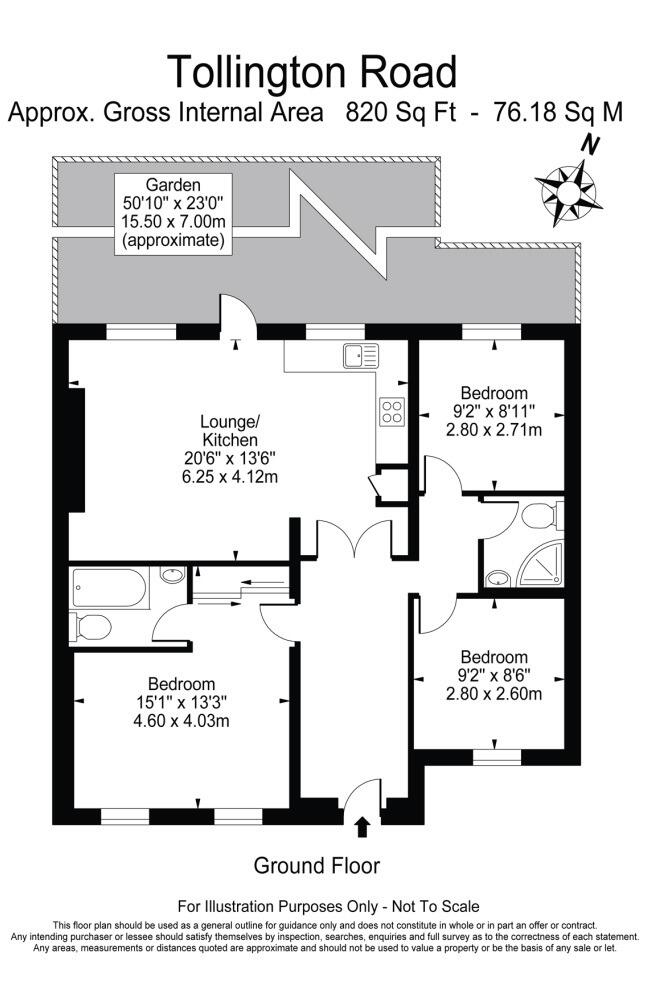 This is a three-bedroom apartment located on Tollington Road, in the Finsbury Park area of Islington. The property offers 820 sqft of living space and includes two bathrooms and a garden. The property is within walking distance of several schools and transport links. While the property appears to be in reasonable condition, some modernisation could be beneficial. The property is reasonably priced for the area.