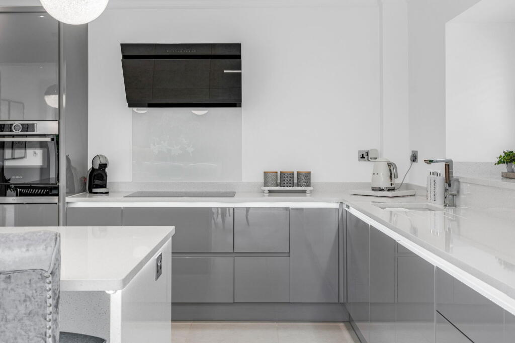 This property is located in East Hanningfield, Chelmsford, a desirable village location in Essex. The area benefits from a good selection of local amenities including a highly regarded primary school (East Hanningfield Church of England Primary School) within walking distance. The property itself is a modern detached house that has undergone significant extension and renovation. The images show a high standard of finish throughout, with a modern kitchen, bathrooms, and living spaces. There is also a substantial garden, and a detached triple garage. The asking price of £1,200,000 is high relative to the average house price in the area (£244,515), but this is likely due to the size of the property and the high-quality finish. Nearby properties of similar type and size appear to be priced higher, suggesting that the asking price may be reasonable for this type of property in this location.