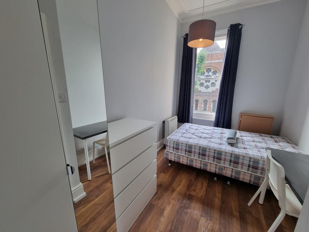 First floor newly refurbished student property within close distance to Parade. Two small double ensuite bedrooms, kitchen with electric cooker and washing machine. Living room, night storage heating and brand new furniture throughout.