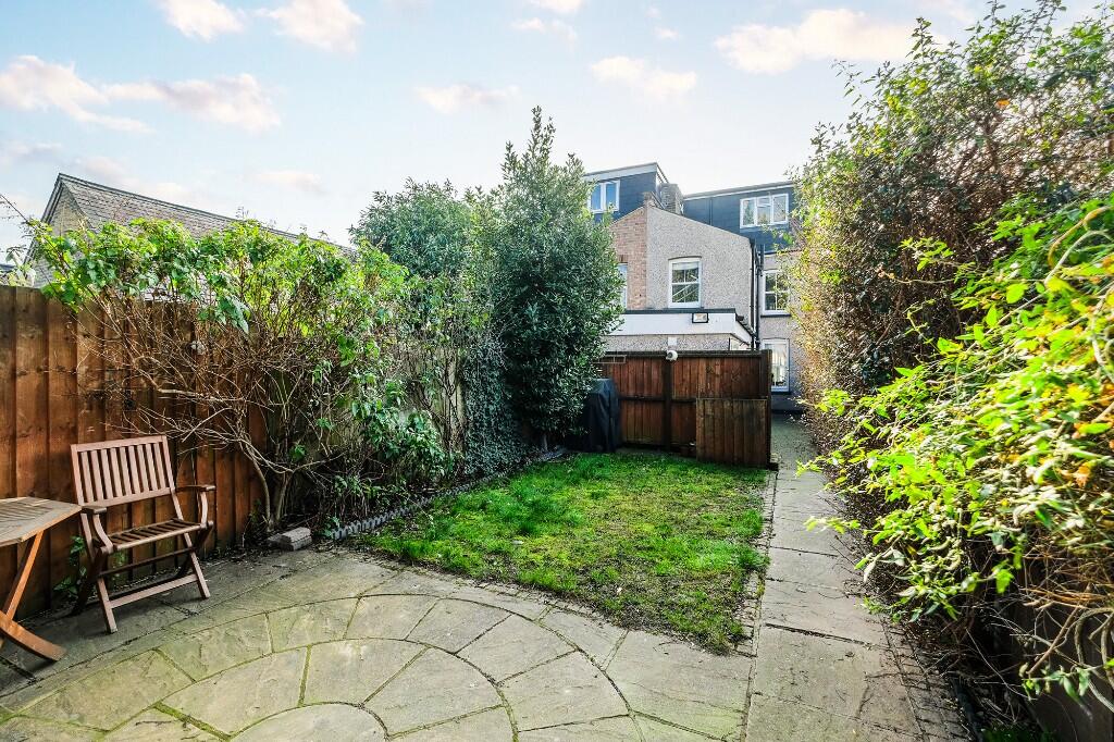 The property is located in South Woodford, Redbridge, which is a desirable area in East London. The area benefits from excellent transport links, with South Woodford tube station providing easy access to Central London. The proximity to good schools, such as Nightingale Primary School (rated Outstanding by Ofsted), further enhances its appeal to families. While the plot size is not specified, the photos show a manageable rear garden, which is a valuable asset in a densely populated area like London.