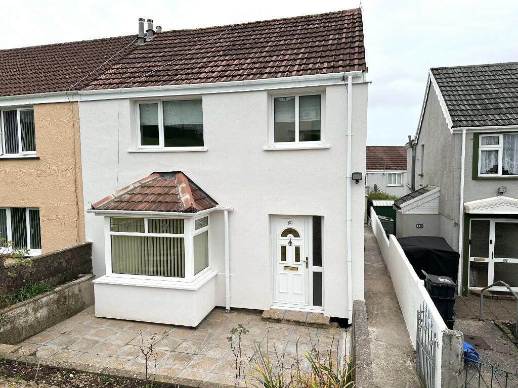 This three-bedroom semi-detached house located at 30 The Birchway, Trefechan, Merthyr Tydfil, is presented for sale by Derek B Phillips. The property has recently undergone significant renovations, including upgraded electrics and central heating, new plastering, painting, and carpeting. These improvements are clearly evident in the photos, showcasing a modernised interior.