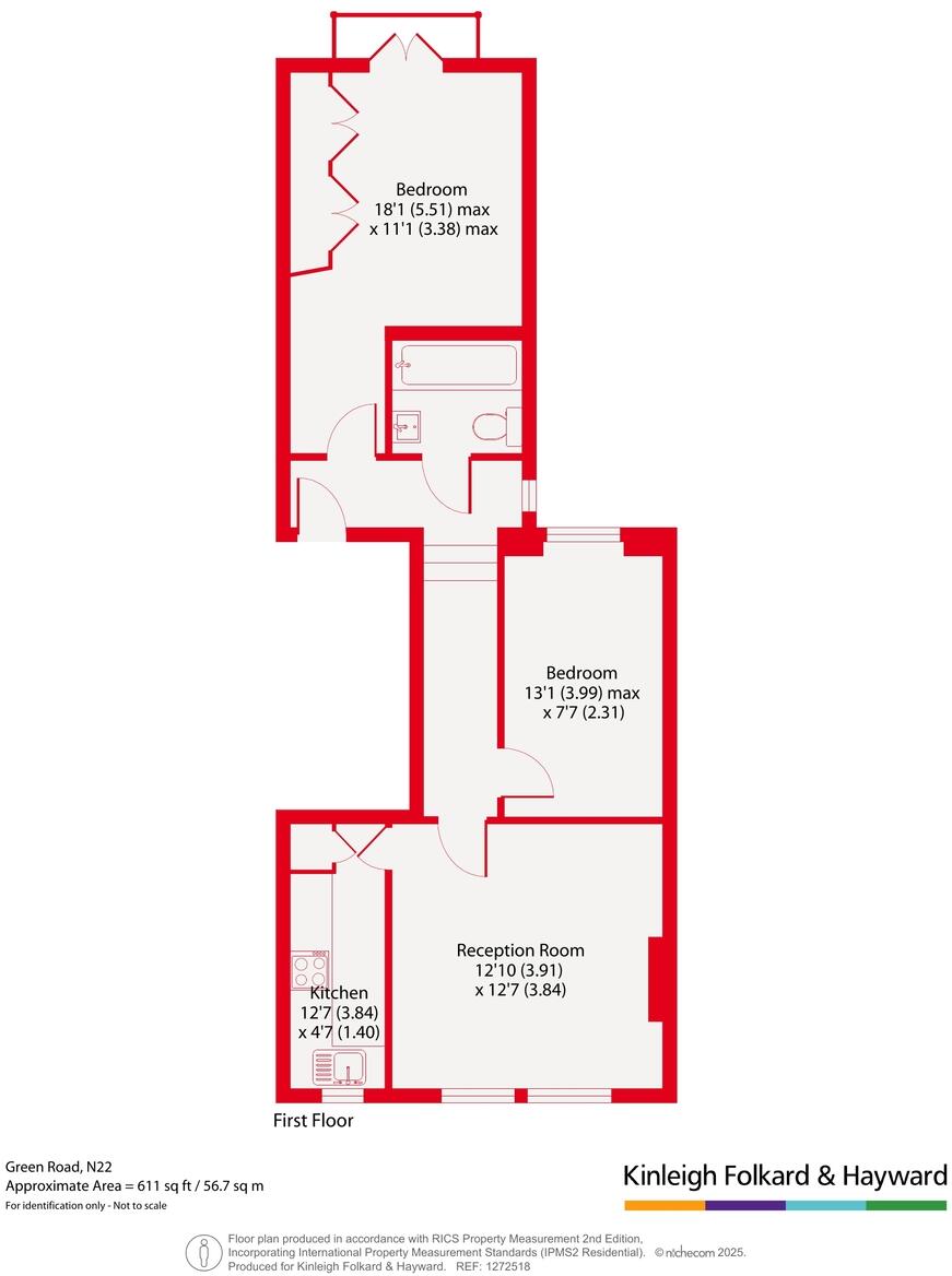 A spacious two bedroom first floor conversion with a separate kitchen and a Juliet balcony from the master bedroom and available chain free