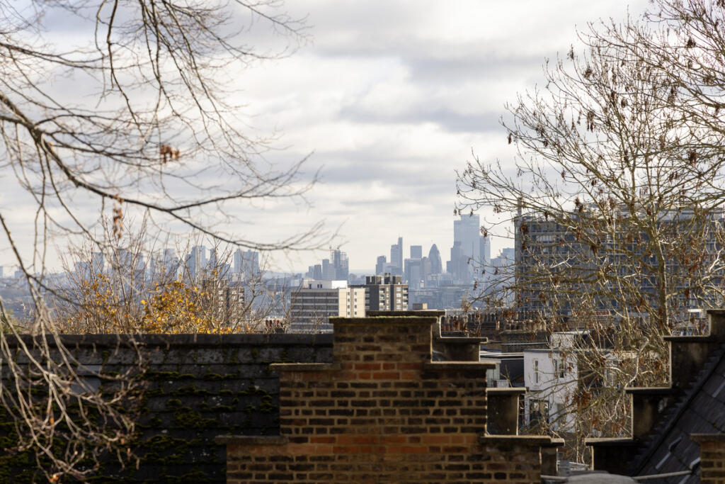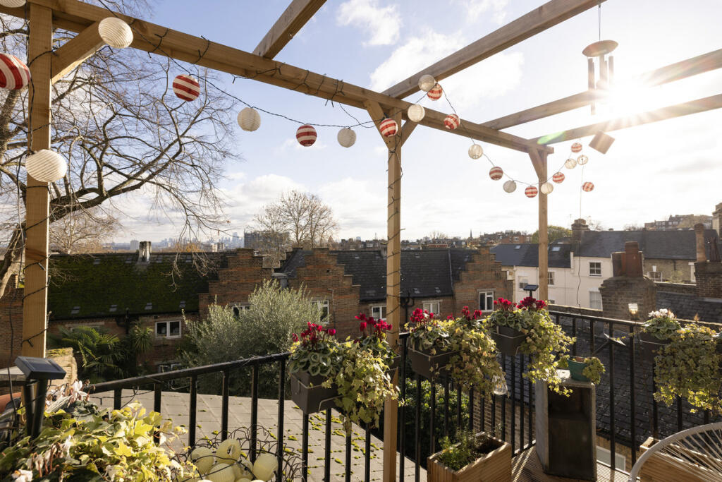 A stunning one-bedroom apartment in the heart of Hampstead village featuring a terrace with village and open skyline city views