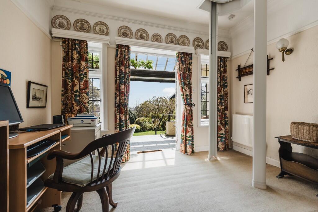 In the same ownership for nearly 30 years, a rare detached 1920's Corfield house in one of the finest addresses in Falmouth, set in a large corner plot within walking distance from beaches, primary schools and the town shopping centre