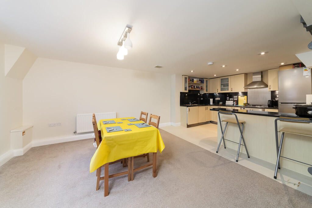 This three-bedroom, two-bathroom apartment is situated in Abingdon’s town centre, offering a convenient location close to amenities and transport links. The property is part of a development with allocated parking and benefits from a pleasing external aesthetic, set within landscaped grounds with views over the river. The internal photos reveal a modern kitchen and bathrooms, a large open-plan living and dining area and three bedrooms. The internal finishes appear to be in a generally good condition, although some aspects of the decor may be considered outdated, necessitating potential updates according to buyer preferences. The lack of private outdoor space is a notable consideration, typical of town centre living. In summary, this property presents a convenient, well-located home with modern conveniences but without a private garden; the list price appears to be in line with the market value for this area and the features on offer.