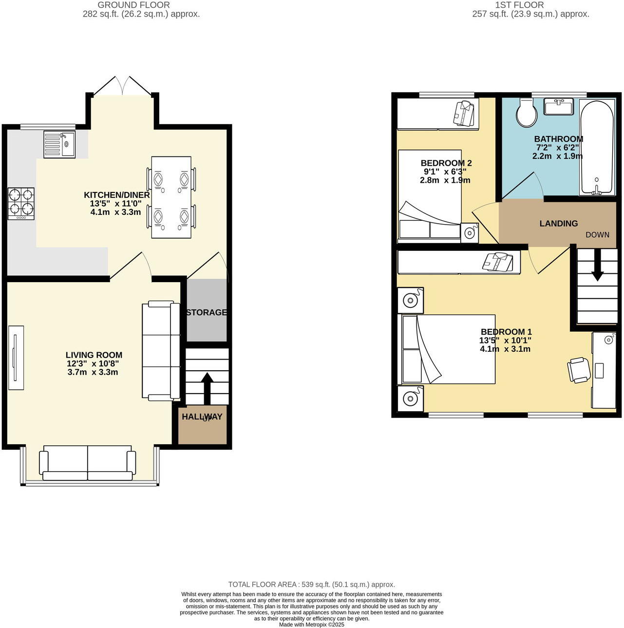 The property includes a small but well-maintained garden, providing additional outdoor space. The size of the garden isn’t specified, but the images suggest it’s suitable for modest use.