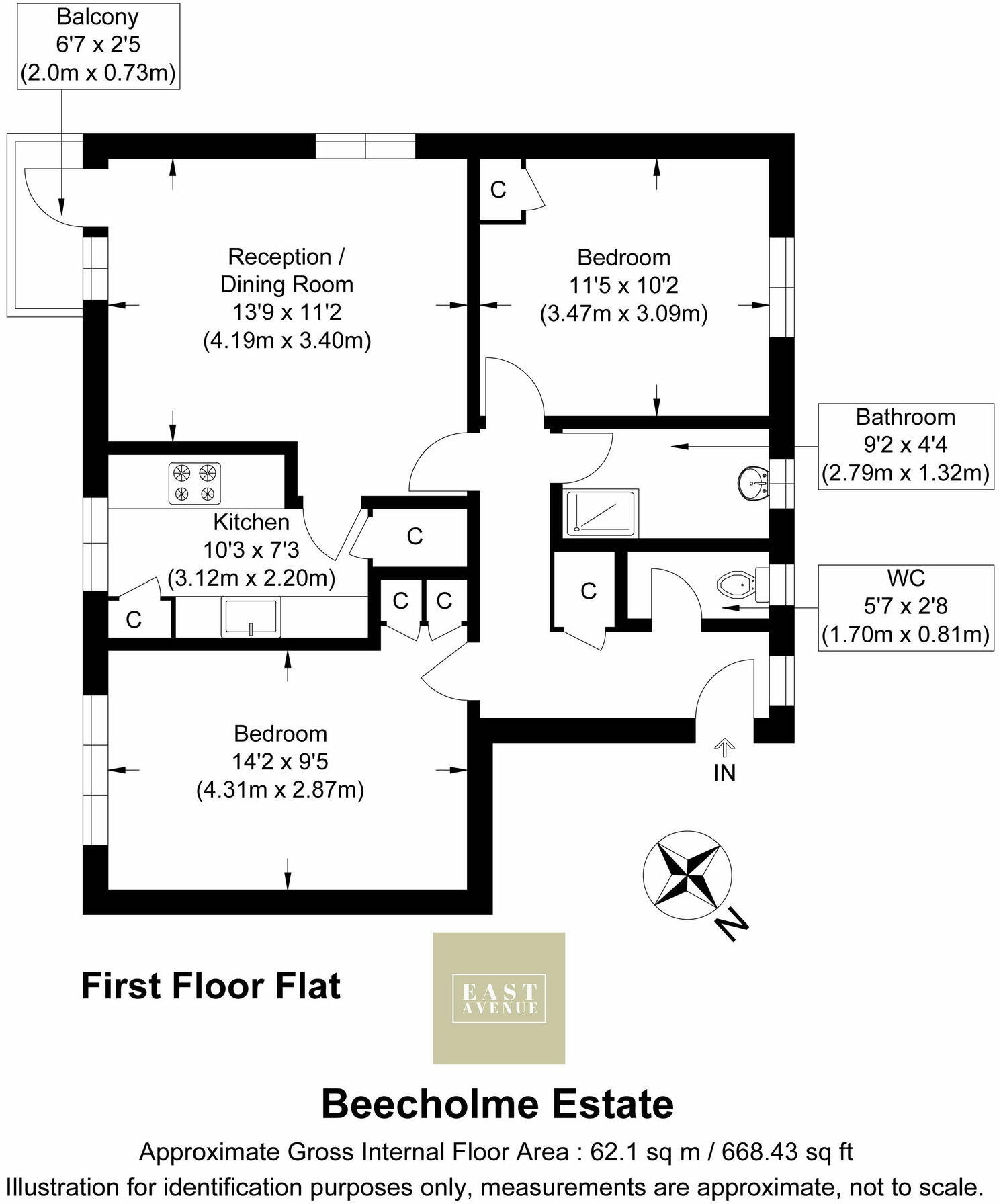 A two-bedroom flat with a private south-west facing balcony in Upper Clapton, Hackney with no onward chain.