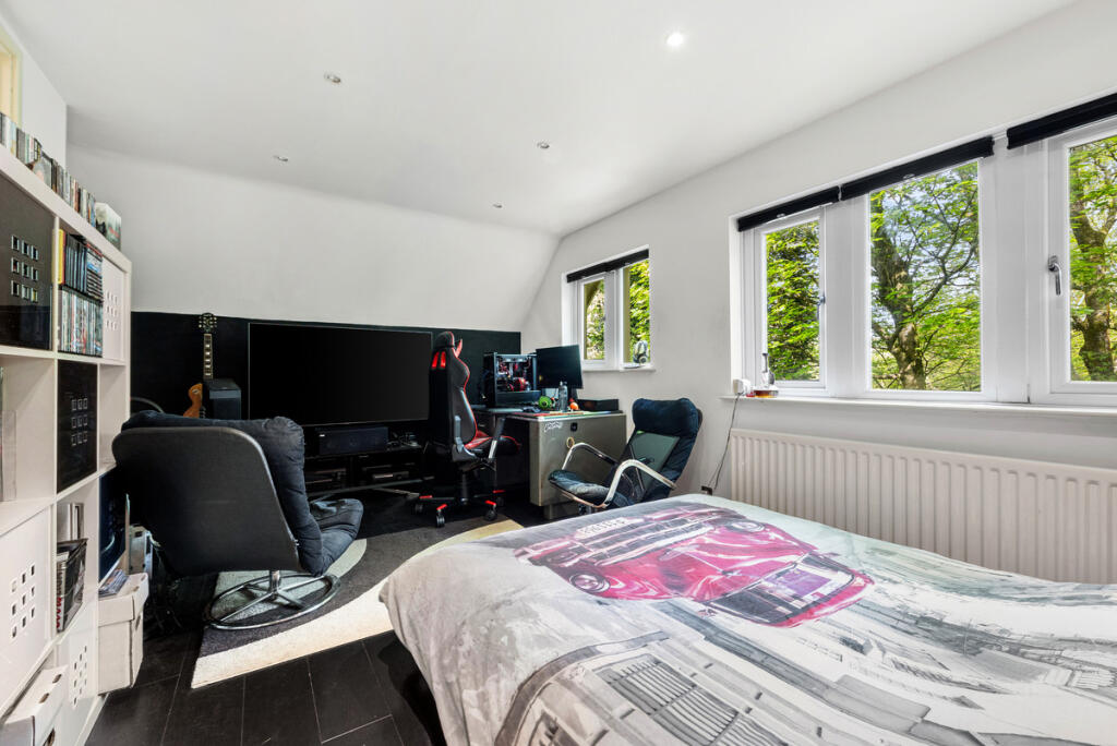 Located between the villages of Marple Bridge and Charlesworth, Bench Meadow is a distinctive stone-built family home set within approximately 5 acres of maintained gardens and natural woodland