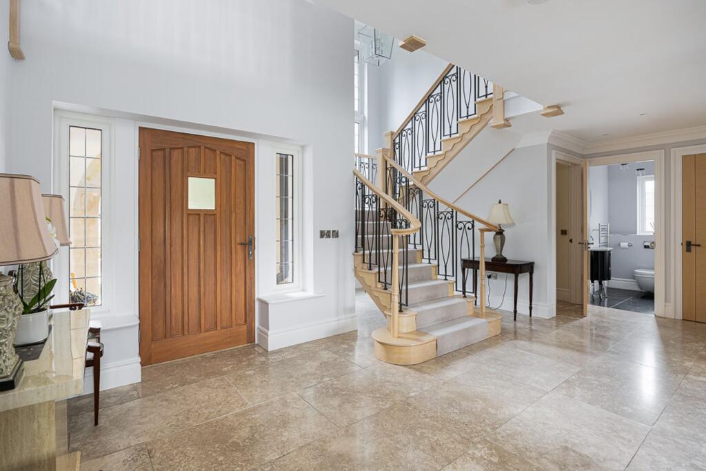 This is a substantial detached property located on Goughs Lane, Knutsford. The house features five bedrooms and four bathrooms, making it suitable for a large family. The interior is modern and well-maintained, with a contemporary kitchen and bathrooms. The property benefits from a large, beautifully landscaped garden, providing ample outdoor space. The location is desirable, with good access to local schools and transport links. The property includes a garage, patio, office, parking, ensuite bathrooms, and a utility room, adding to its appeal. Overall, this property offers a blend of luxury, comfort, and convenience in a sought-after location.