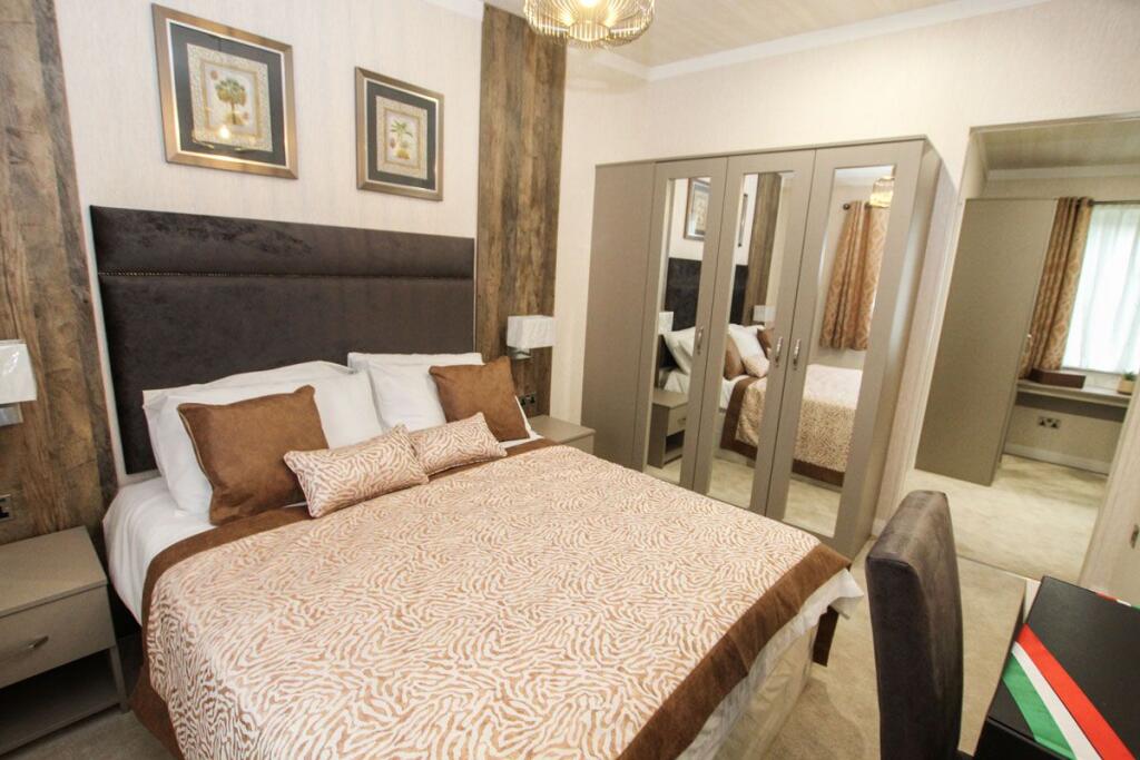 Fully furnished 2-bedroom lodge in a gated community with private parking, master en-suite with walk-in wardrobe, and a 10-year warranty. Set in beautifully landscaped grounds with a 12-month residential license. Excellent transport links. Enquire now to view.