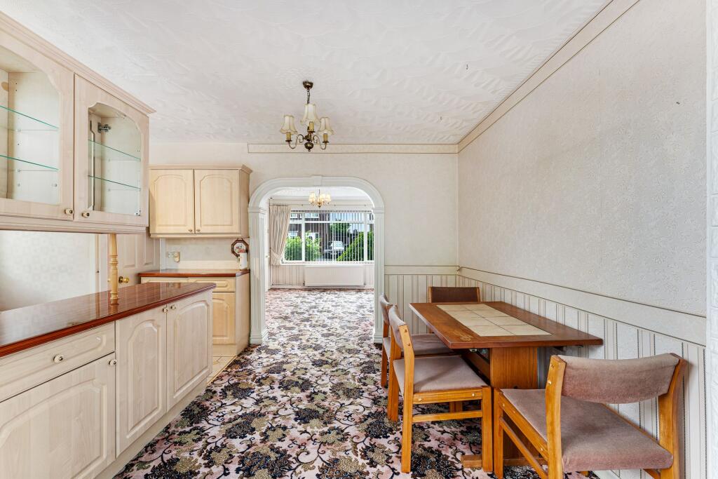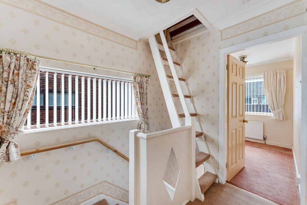 3-bed semi-detached house in sought-after area. Lounge, dining area with patio doors to garden, well-positioned kitchen. Upstairs: 3 bedrooms, loft room, family bath. Front and rear gardens, garage, driveway for multiple vehicles, close to public park. Early viewings recommended.