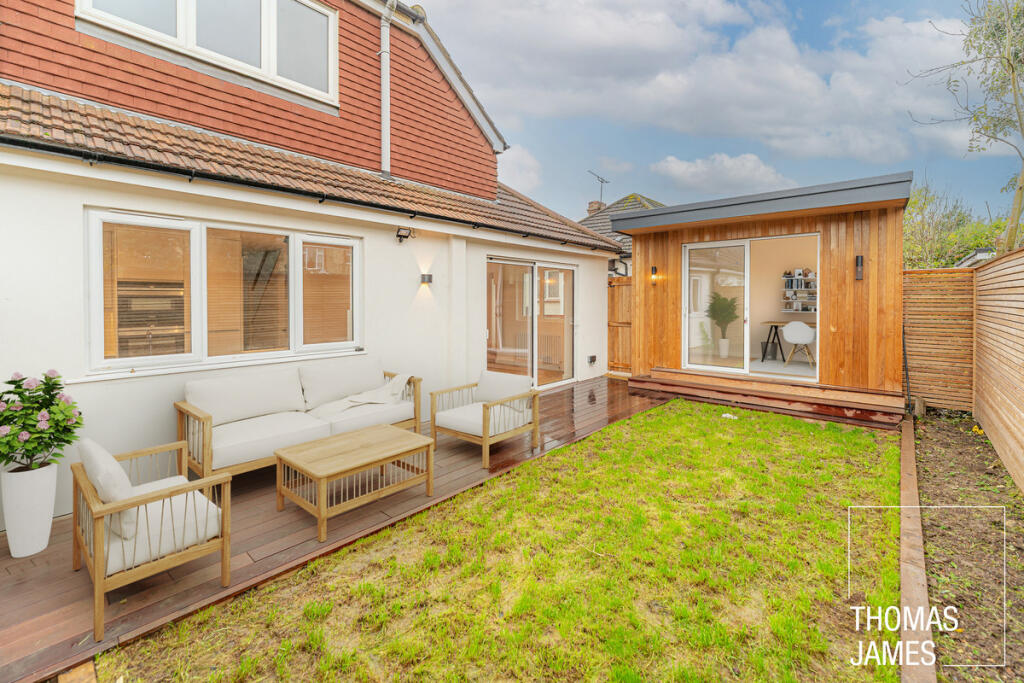Ideally located in a quiet tree-lined street between Winchmore Hill and Palmers Green, this newly converted three bedroom dormer bungalow has been finished to a very high standard, and has the bonus of a fabulous garden studio