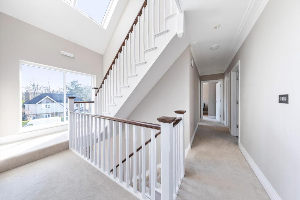 An exceptional family home set over 3 floors, set in a popular Cobham road with solar panels, great size garden and garage. On the ground floor you have a lovely hallway with vaulted ceiling. Leading from the hallway you have access to the study, WC, play room with doors onto the patio, a bright...