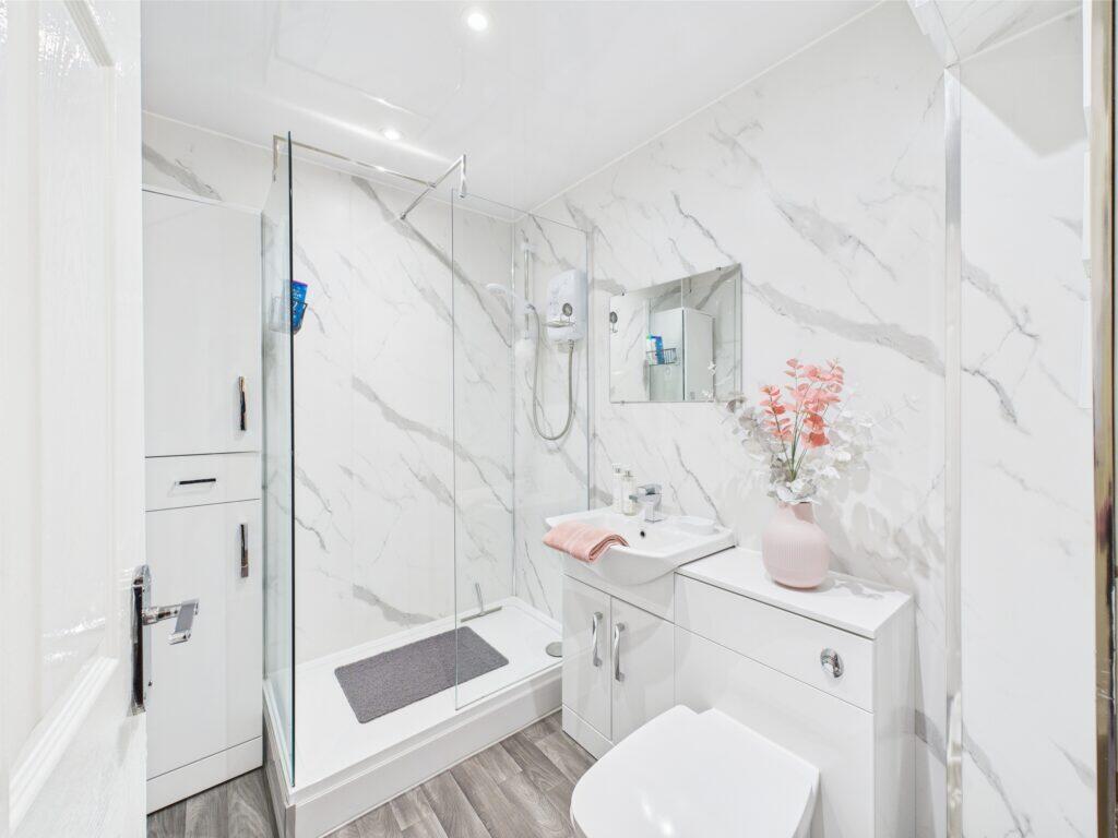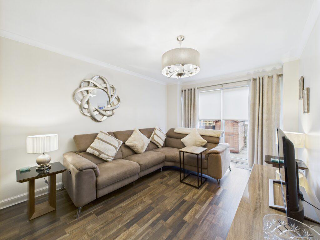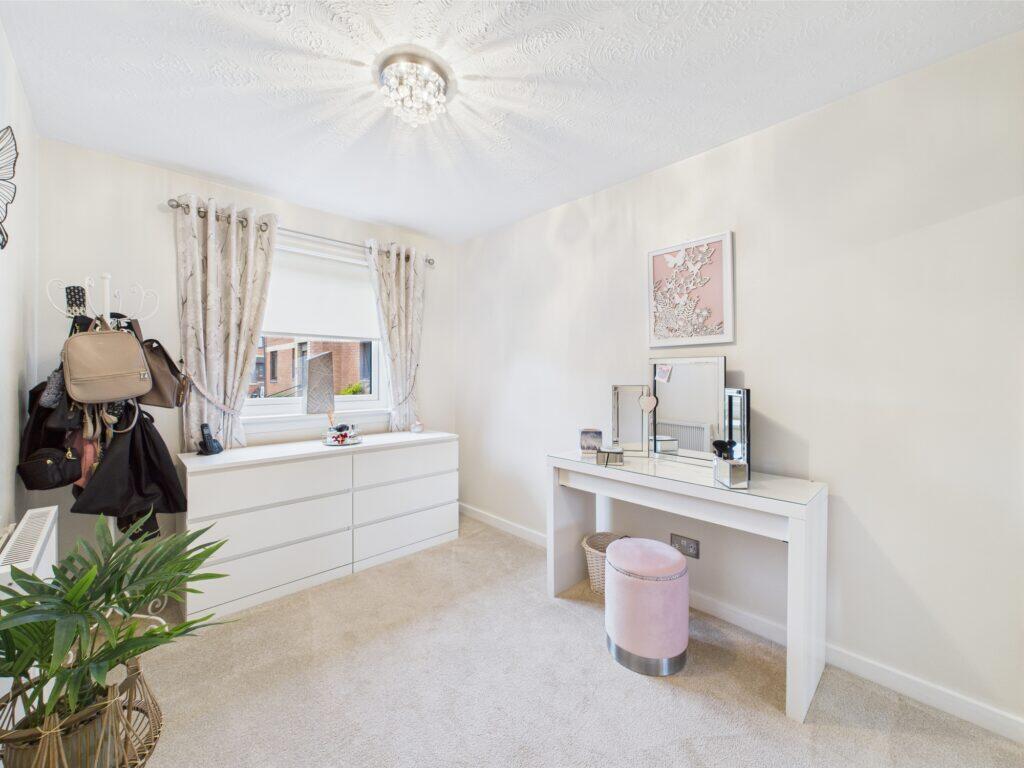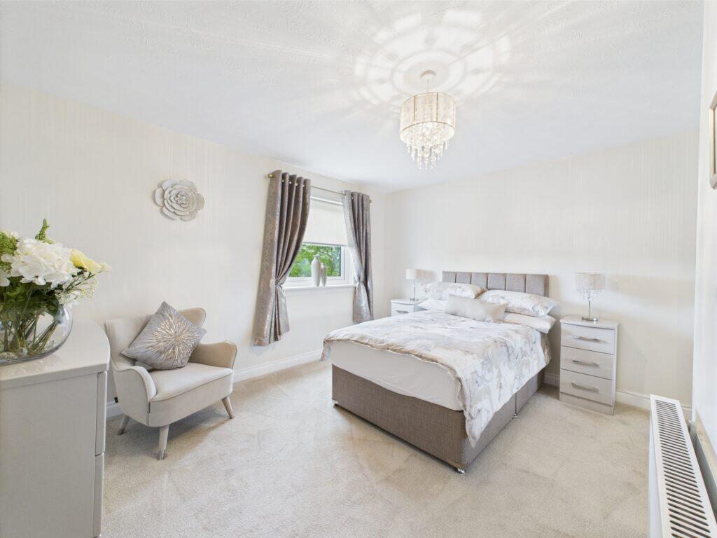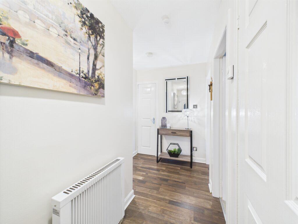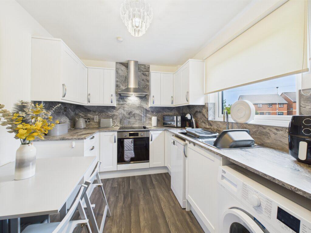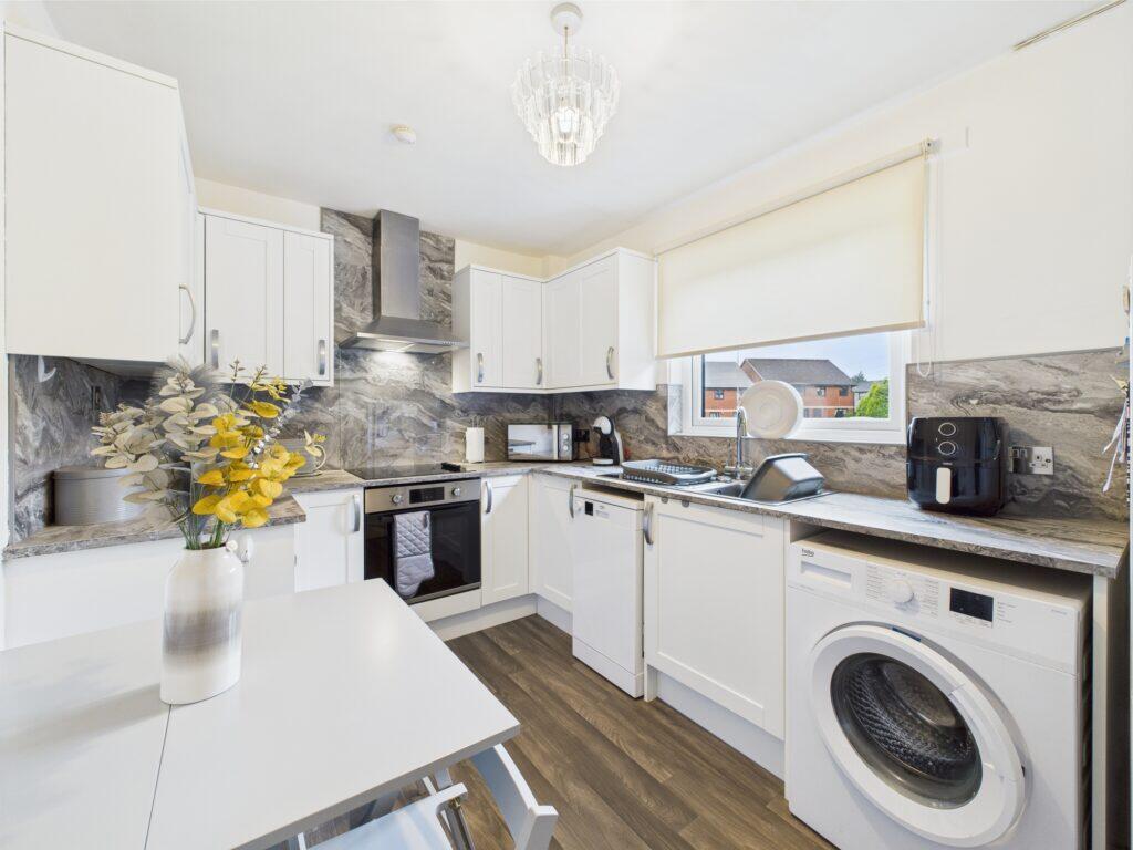 This is a 2-bedroom flat located on Kirkhill Road in Wishaw, North Lanarkshire. The property appears to be in good condition, with a modern interior and well-maintained exterior. It includes a small garden and is located near Shieldmuir train station. The listing price seems reasonable considering the location and condition of the property.