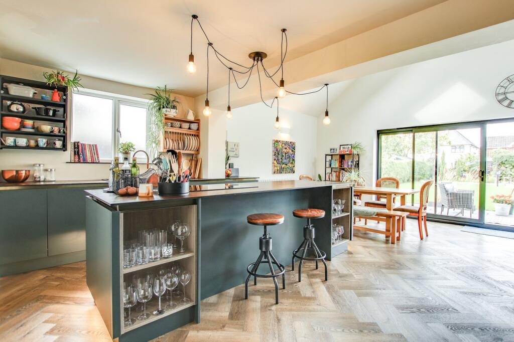 A contemporary detached chalet residence, thoughtfully extended and modernised by the current owners to a high standard, featuring quality fixtures and fittings throughout. The property offers stylish open-plan living, three double bedrooms, and two bathrooms, all set within beautifully l...