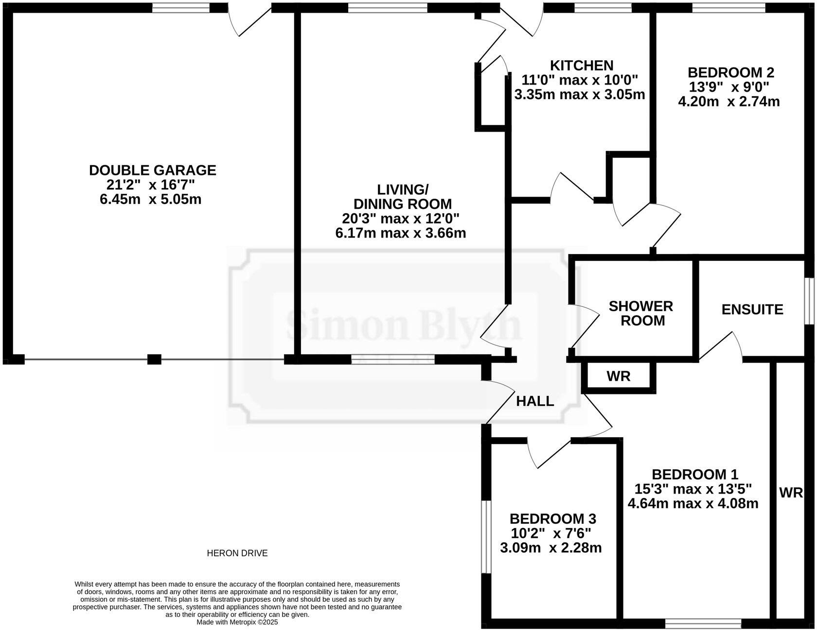 The property is a detached bungalow located on Heron Drive, Wakefield, WF2 6SW.