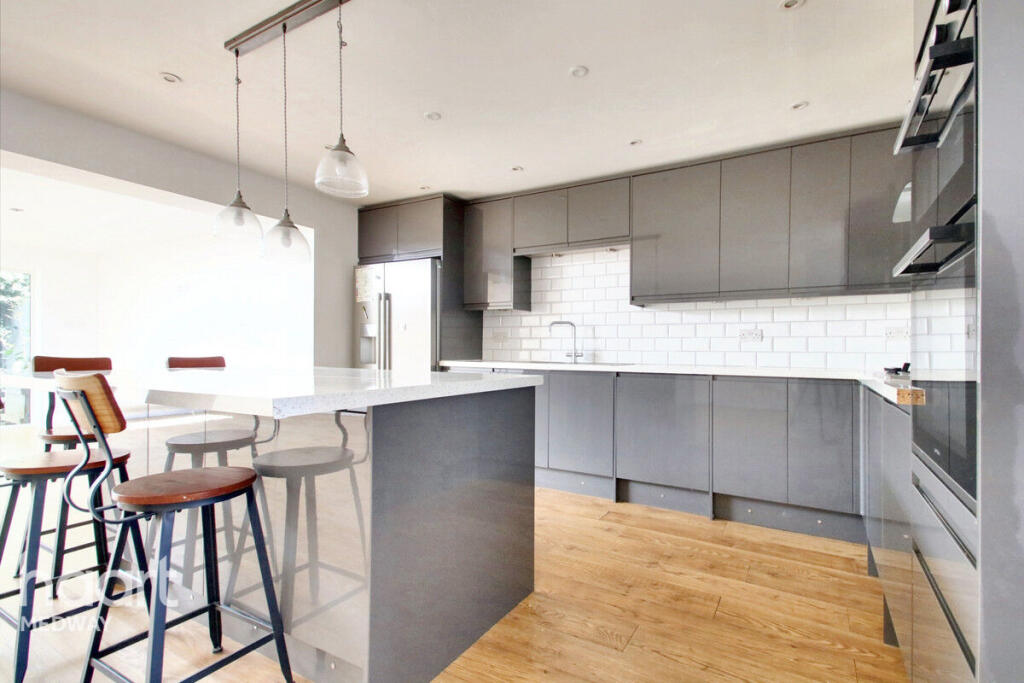 This property is a 4-bedroom, 3-bathroom semi-detached house located in Rochester, Kent. The property benefits from a modern extension, creating a large open-plan living space with a contemporary kitchen and ample natural light. The garden is of a reasonable size, and the property appears to be well-maintained, although some minor landscaping work might enhance its appeal. The location is convenient with proximity to local schools and transport links. However, the lack of square footage data makes a definitive assessment of the price per square foot challenging. Compared to other properties in the area, the list price of £525,000 appears to be at the higher end of the market, particularly considering some comparable properties are listed significantly lower.