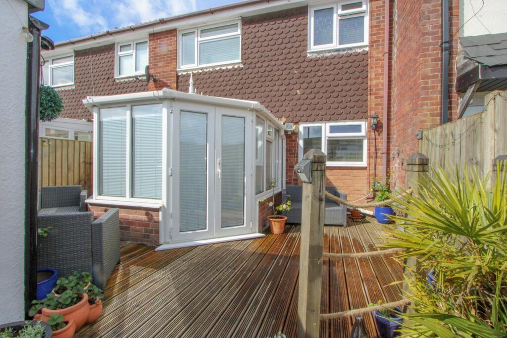The property is a 3-bedroom terraced house located in Glenfall, Yate, South Gloucestershire. It benefits from a modern kitchen and conservatory, and a well-maintained rear garden with patio and decking. The property appears to be in good condition, with recent renovations evident in the kitchen and bathroom. The location is positive, with nearby primary schools rated ‘Good’ by Ofsted, and Yate train station within reasonable commuting distance. The proximity to local amenities is not explicitly detailed, however, the images suggest a residential area. The property includes a garden, offering outdoor space. The size of the plot is not specified, so a detailed assessment of the land score is not possible. The list price of £289,950 is slightly higher than the average house price in the area (£274,121). However, given the apparent good condition of the property and the inclusion of a modern kitchen and conservatory, the price may be considered reasonable. More information on the square footage of the property would be needed to provide a more precise evaluation of price per square foot and a definitive assessment of value for money.