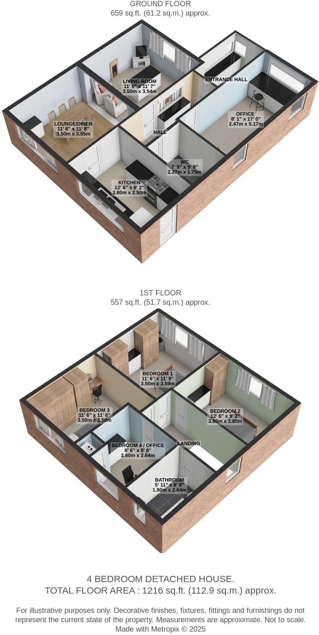 Condition: The property appears to be in generally good condition, although some aspects suggest it could benefit from modernisation. The kitchen and bathroom seem relatively updated, while other areas, such as some bedrooms and the hallway, show signs of needing some refreshing. The overall impression is of a well-maintained home that could be improved with some cosmetic updates.