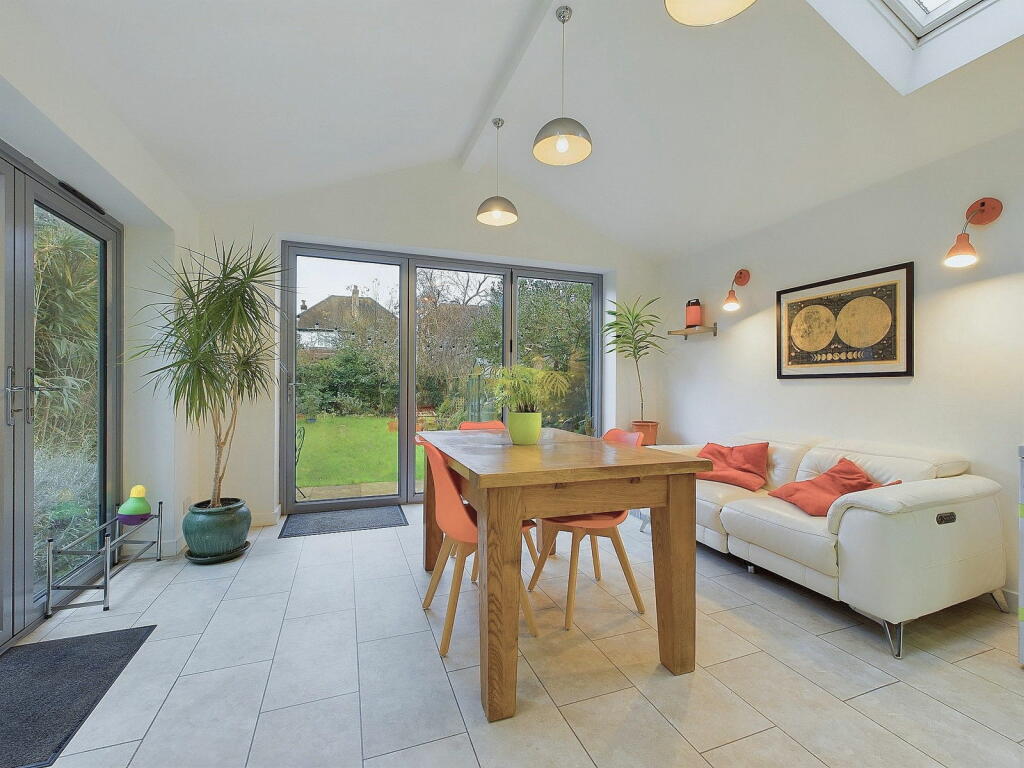 The property is a substantial detached family home boasting five bedrooms and three bathrooms. Its location in Westbourne, Hove is a highly desirable residential area, known for its proximity to excellent schools, parks, shops, cafes, train stations, and the seafront. The ease of access to amenities and transport links significantly enhances its appeal. The images reveal a well-maintained property with a modern kitchen extension and a sizeable west-facing rear garden. The interior appears to be in good condition, although some rooms show personal décor which may not appeal to all buyers. The presence of a garden is a considerable asset, particularly in a sought-after area like Westbourne.