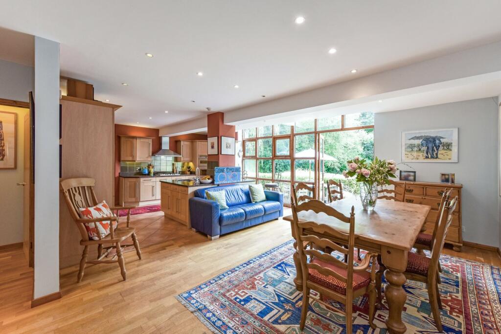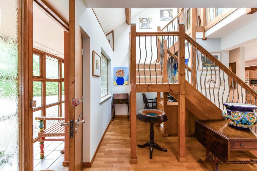 The bedrooms, particularly the master suite in the loft conversion, are spacious and well-lit, with ample storage options and skylights adding natural brightness. The bathrooms feature contemporary fixtures and finishes, adding to the property’s overall modern feel. The home’s extensive glazing offers spectacular views of the surrounding garden and woodland areas.