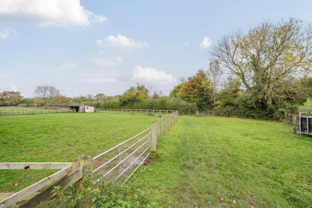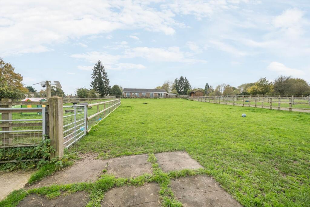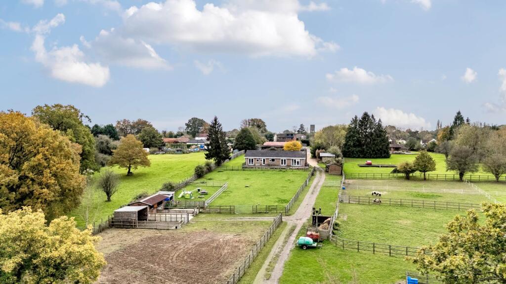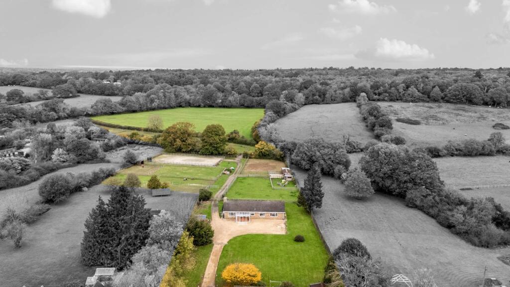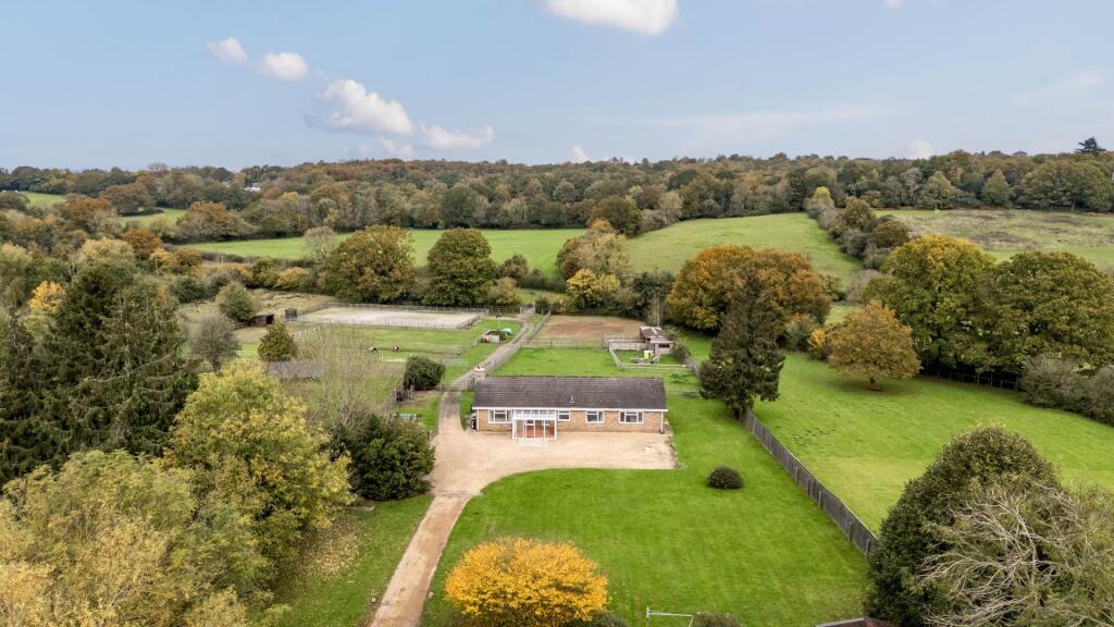 This property presents a unique opportunity to acquire a substantial residential holding in a desirable location. The 15.4-acre plot is a key selling point, providing ample space for various uses including equestrian pursuits, as evidenced by the presence of stables, an arena and paddocks. The house itself is a bungalow style property, appearing to be well-maintained but potentially benefitting from some updating or cosmetic improvements to fully realize its potential. Whilst there are areas that appear dated, the interior images show a relatively modern kitchen and bathroom, indicating recent investment. The location on the outskirts of Wokingham, within the village of Barkham, offers a peaceful atmosphere whilst remaining within a reasonable distance to the amenities and transport links of Wokingham town and the surrounding areas. The proximity to a number of well regarded schools adds to the properties family appeal. The price appears reasonable, especially when considering the vast land area, but a precise assessment is limited by the lack of accurate house square footage and specific details of the outbuildings. Overall, this property represents an ideal opportunity for those seeking a country lifestyle within easy access of the town and other facilities, who perhaps have a keen interest in equestrianism or other activities that require substantial land. Potential buyers should conduct a thorough survey to assess the condition of both the house and outbuildings accurately.