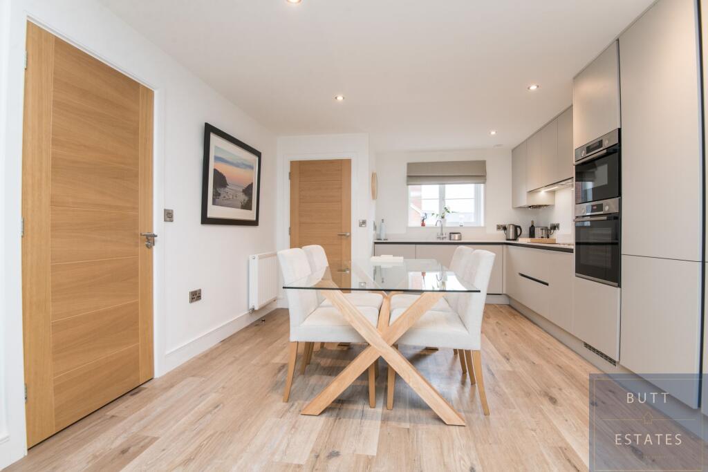 This three-bedroom, two-bathroom property in Exmouth, Devon, presents itself as a well-maintained and modern home. The images suggest a recently updated or newly built house, boasting a contemporary design and high-quality finishes throughout the kitchen, living areas, and bedrooms. The bathrooms also appear modern and clean.