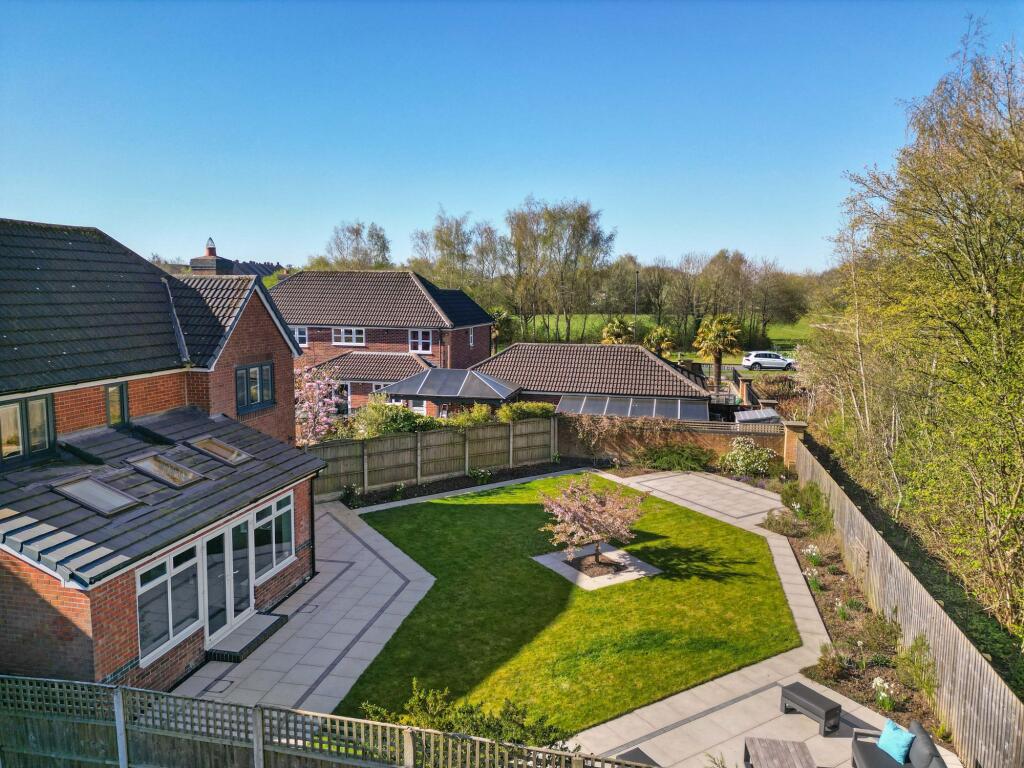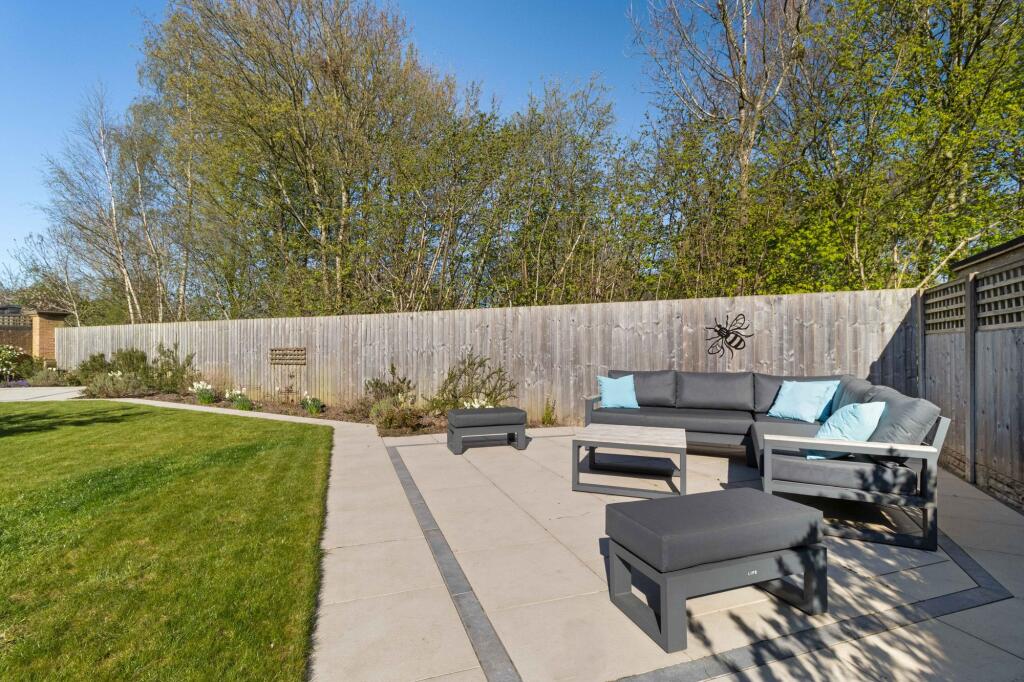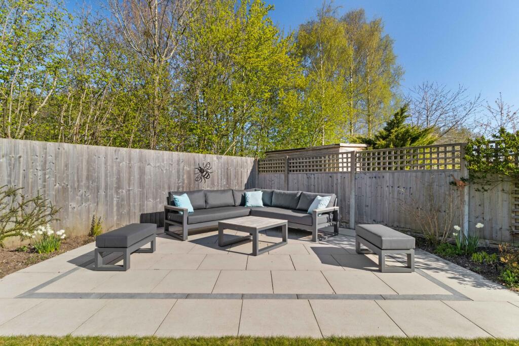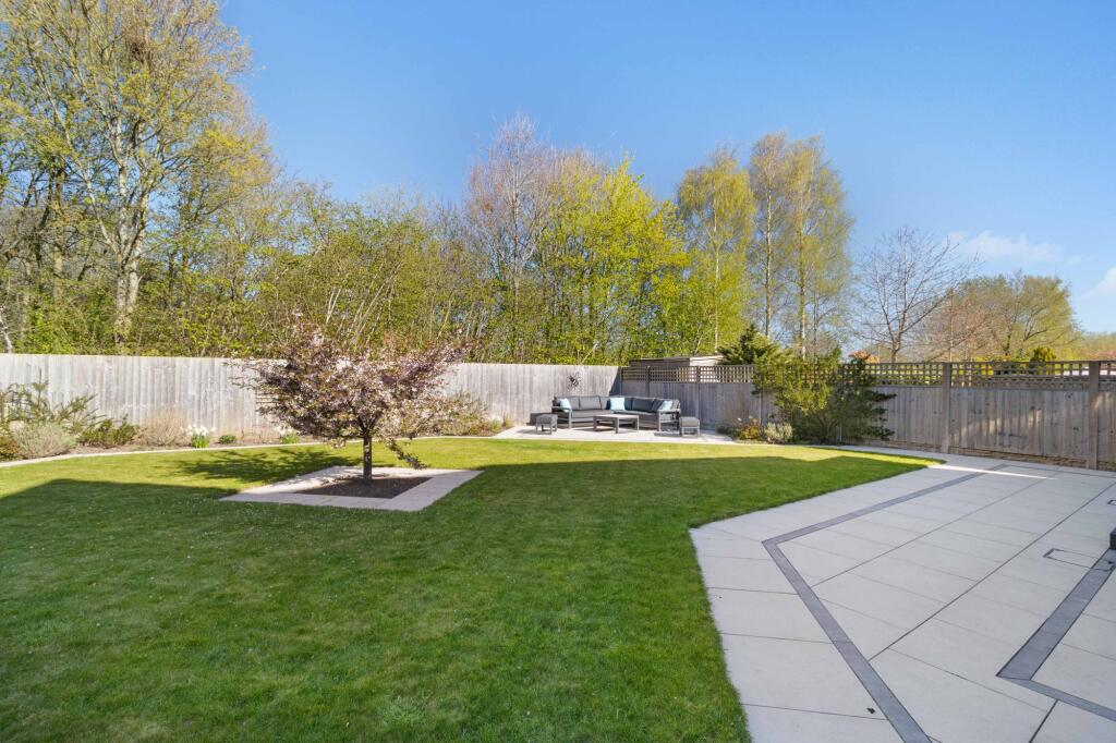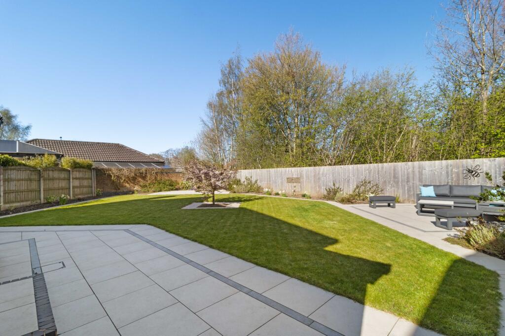 The property boasts a substantial garden, offering ample outdoor space. The images show a well-designed and landscaped garden, ideal for family use and entertaining. The size of the plot is significant, providing privacy and a desirable feature for potential buyers.