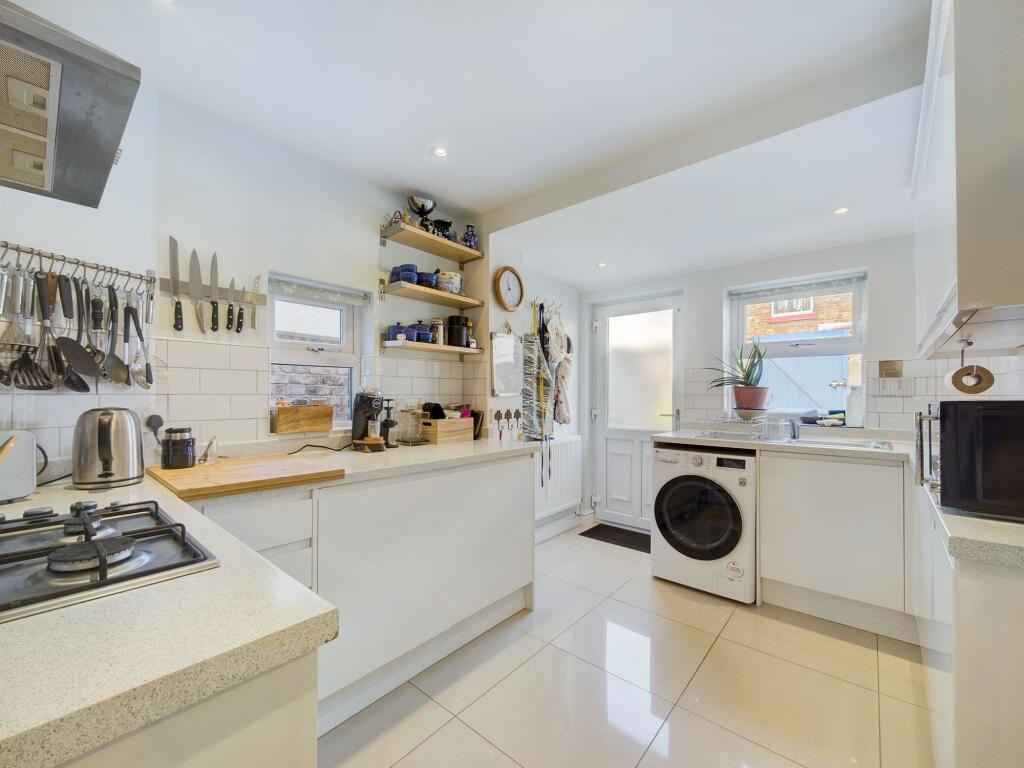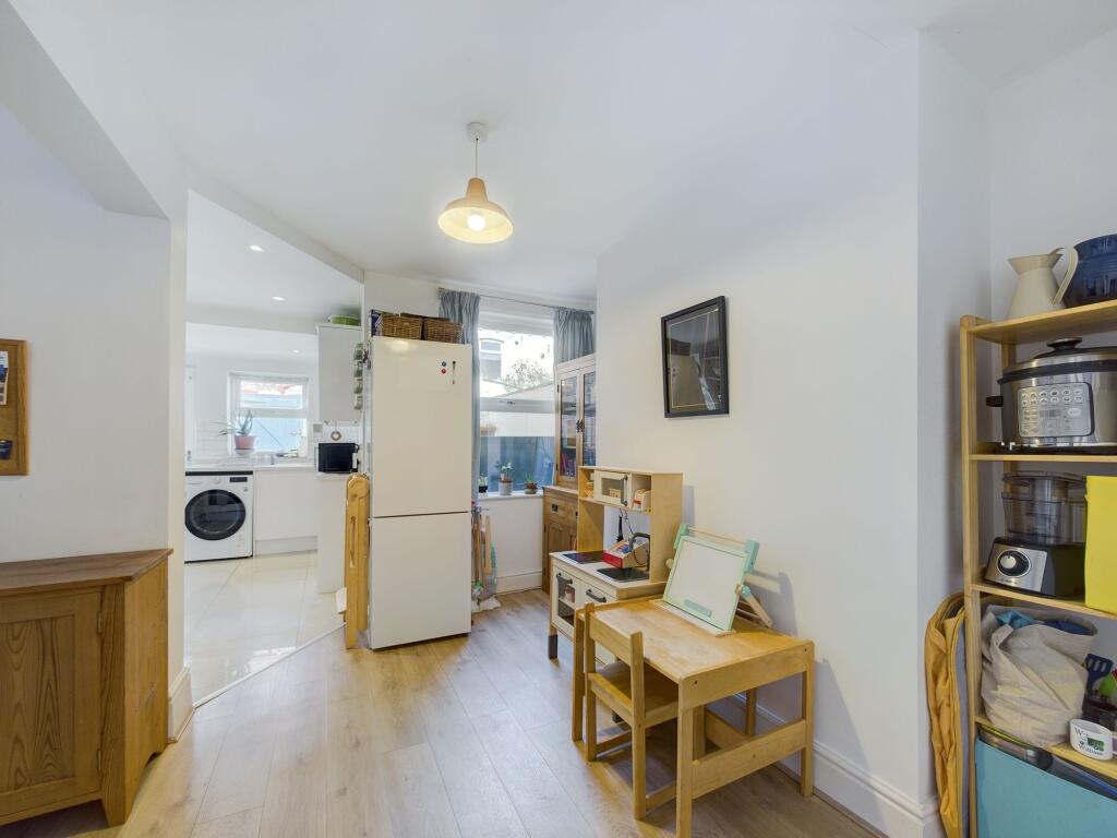 The house itself appears to be in good condition, with a recently modernised kitchen and bathroom that have been updated to a modern aesthetic. The interior is bright and airy. The number of bedrooms makes it suitable for larger families. While there is a small paved rear yard with a shed that offers some outdoor space, the area is small, not a significant feature.