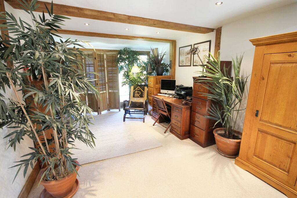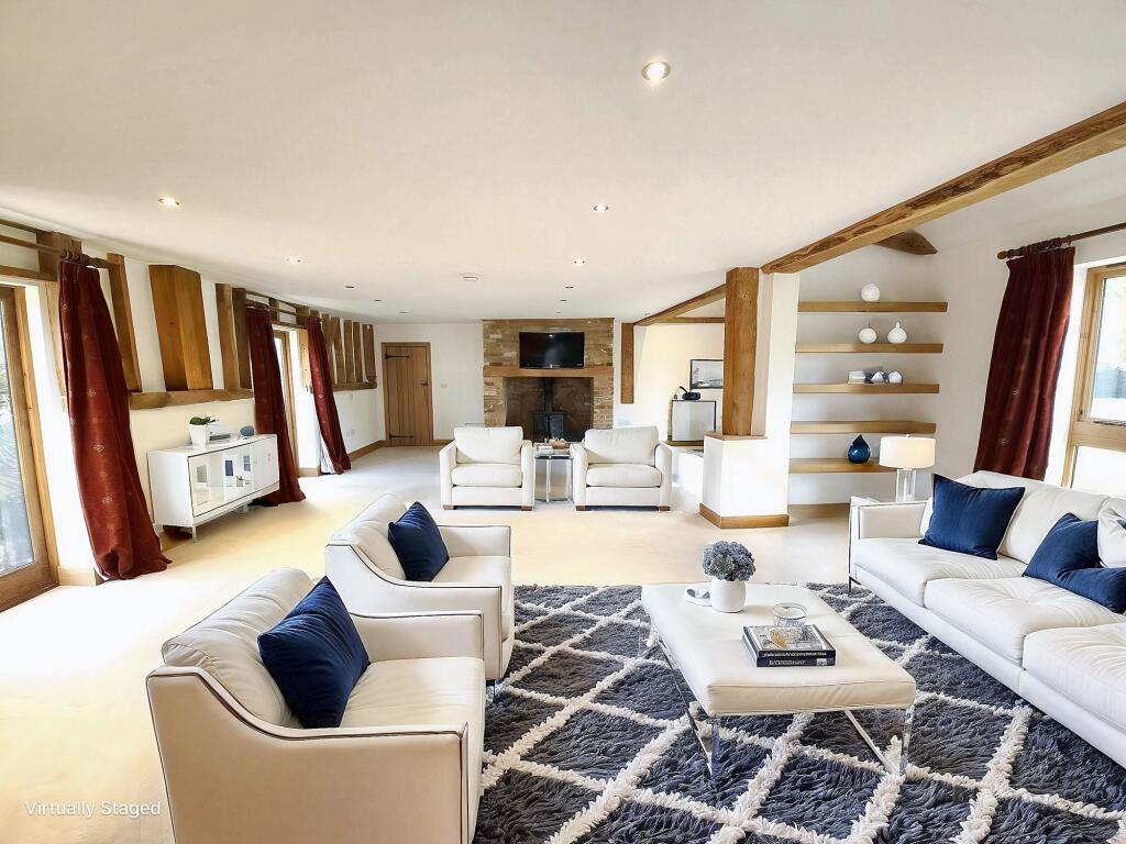 Luxurious 6-bed detached house with annexe, 5-car garage, and 2-acre grounds in semi-rural setting. Available May 2025, unfurnished. Tranquil, convenient, and elegant living.