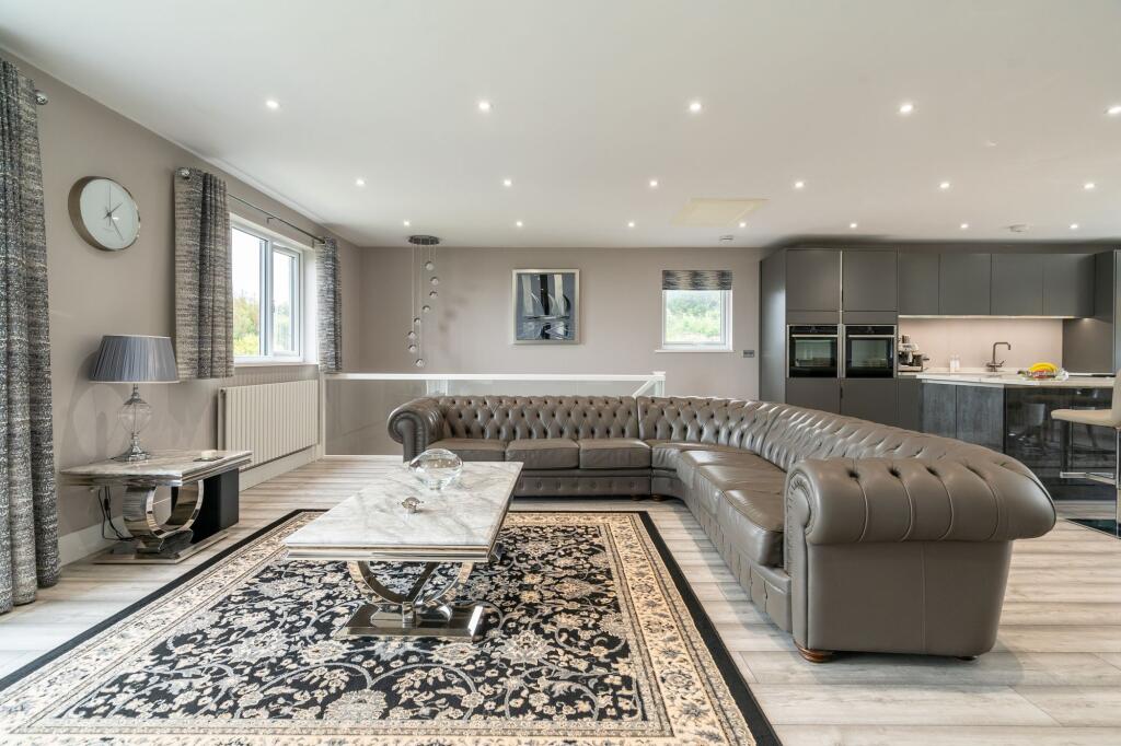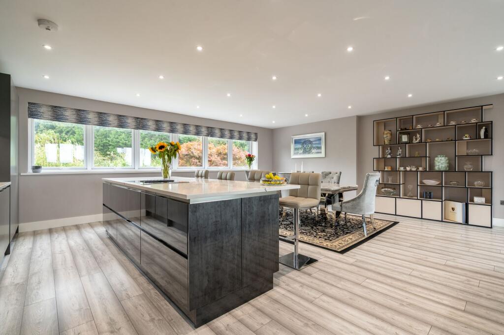 Stunning extended detached three bedroom family home with all three double bedrooms having en-suite facilities. The 33ft x 23ft living room is magnificent with far reaching sea and countryside views. Landscaped gardens, parking for 5 vehicles and large garage.
