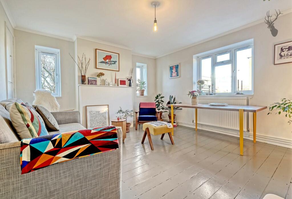 Discover this beautifully presented 1950s ex-local flat, perfectly positioned in the heart of Stepney Green. With its sought-after corner aspect, this two-bedroom, top-floor home is flooded with natural light throughout the day, creating an inviting and airy atmosphere.