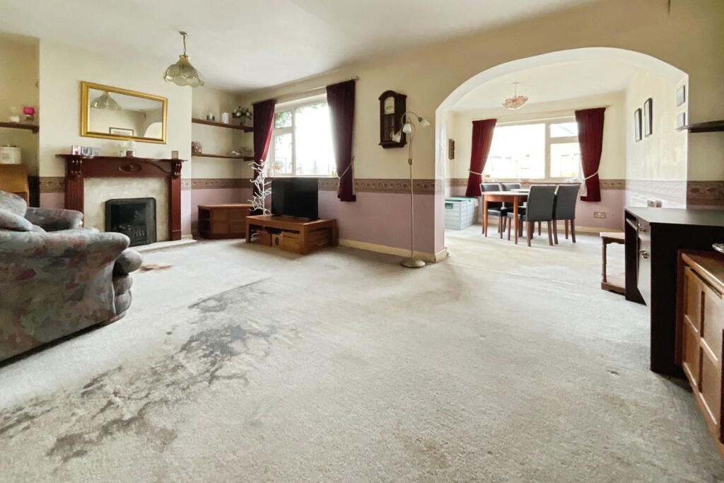 A three-bedroom town house in need of renovation, offered with no chain. The ground floor includes a porch, hallway with storage, kitchen, downstairs WC, spacious lounge and a dining room extension. Upstairs offers a generous landing, three bedrooms all with built-in storage, and a family bath...