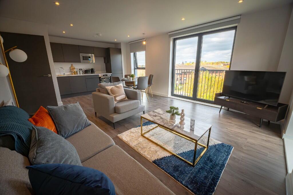 This is a modern, well-presented apartment in a popular location. It is close to local amenities and transport links. The apartment has two bedrooms and two bathrooms, making it suitable for a small family or couple. The lack of a garden may be a drawback for some buyers. The price is slightly above average for the area, but this is justified by the condition of the property.