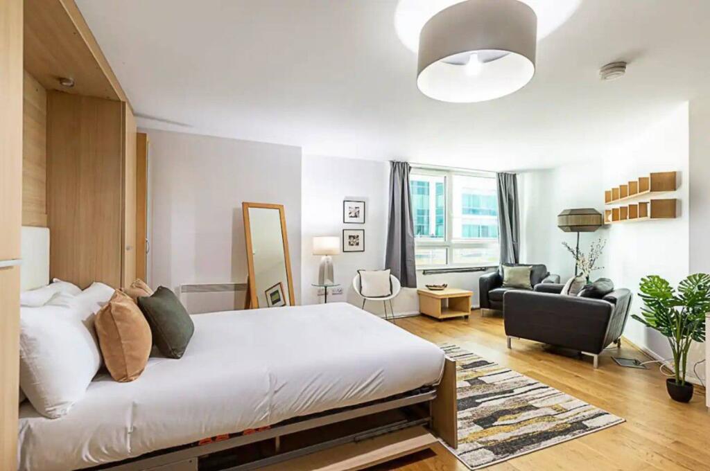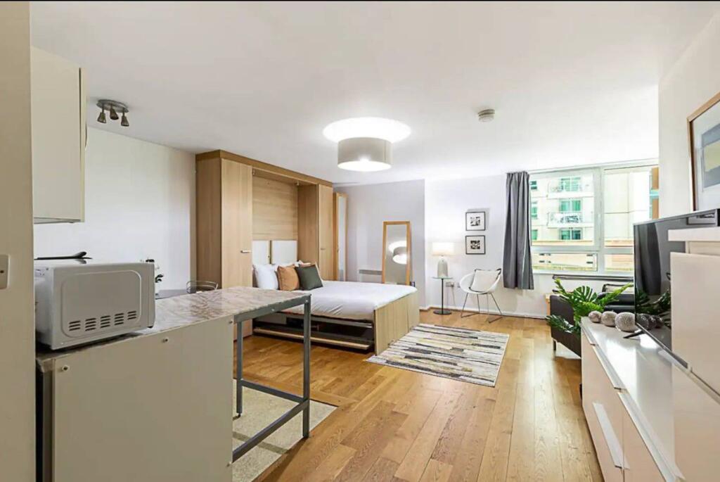 ZERO DEPOSIT AVAILABLE. LONG LET. Situated within the prestigious St George Wharf riverside development, a fabulous studio flat offering contemporary living space throughout.