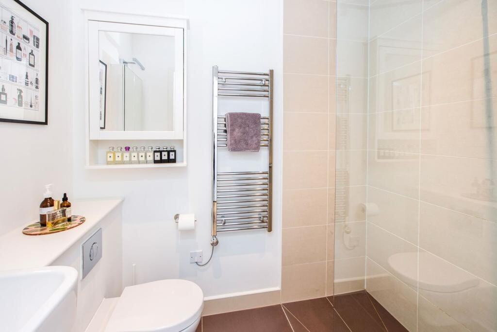 This property is a one-bedroom flat located in the Homerton area of Hackney, East London. The flat is modern and well-presented, as seen in the provided images. It benefits from a good-sized living area, a modern kitchen, and a contemporary bathroom. The property also includes access to a communal roof terrace offering views of the London skyline. The location is convenient, with Homerton Overground station within walking distance, providing easy access to other parts of London. Several well-regarded schools are also nearby. While the property itself is in excellent condition, the lack of plot size information limits a full land assessment. The list price is below the average price for the area, however, further information on the property size is needed to accurately assess value for money.