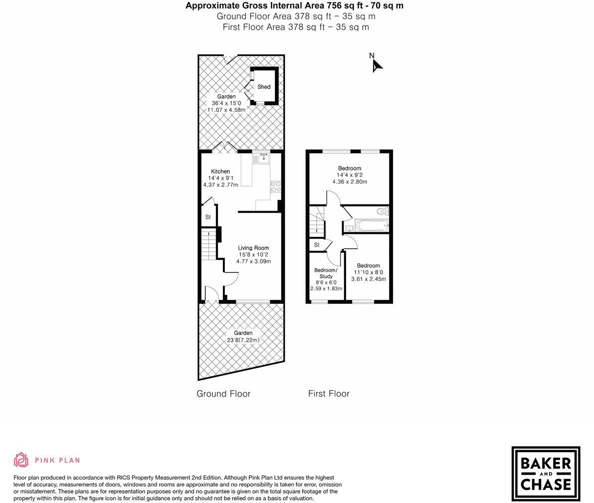 Baker and Chase are delighted to offer this well-proportioned three-bedroom house, tucked away in a quiet cul-de-sac location with a southerly facing rear garden and garage en-bloc. The property is arranged over two floors and offers a bright and practical layout. The ground floor compri...