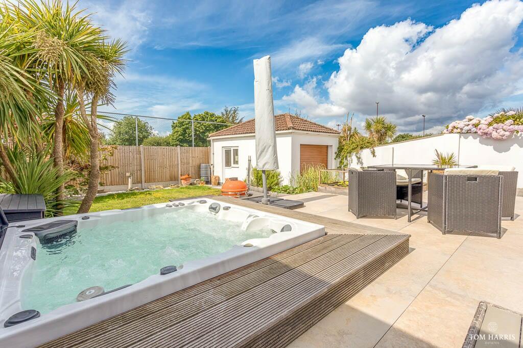 This four-bedroom, two-bathroom property situated on Cedar Avenue in Christchurch, Dorset presents a compelling proposition for discerning buyers. The images reveal a home that has undergone a significant and tasteful modernisation. The interior is bright, airy, and finished to a high standard with modern fixtures and fittings. The open-plan living area and upgraded kitchen are particularly noteworthy, promising comfortable and modern living. The exterior is equally appealing, featuring a well-maintained garden, patio area and a hot tub, which provides additional lifestyle benefits. The inclusion of a detached garage is a useful feature that increases both functionality and property value.
