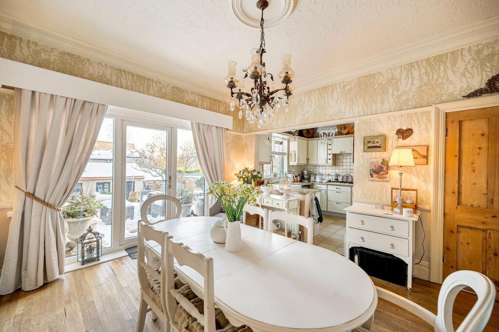 5-bed Edwardian semi-detached home with cellar, driveway, and detached garage in a small cul-de-sac. Planning permission for rear extension granted. Close to amenities.