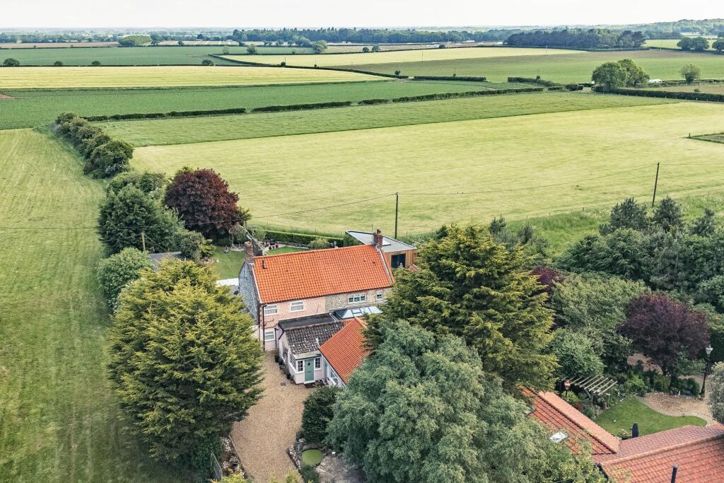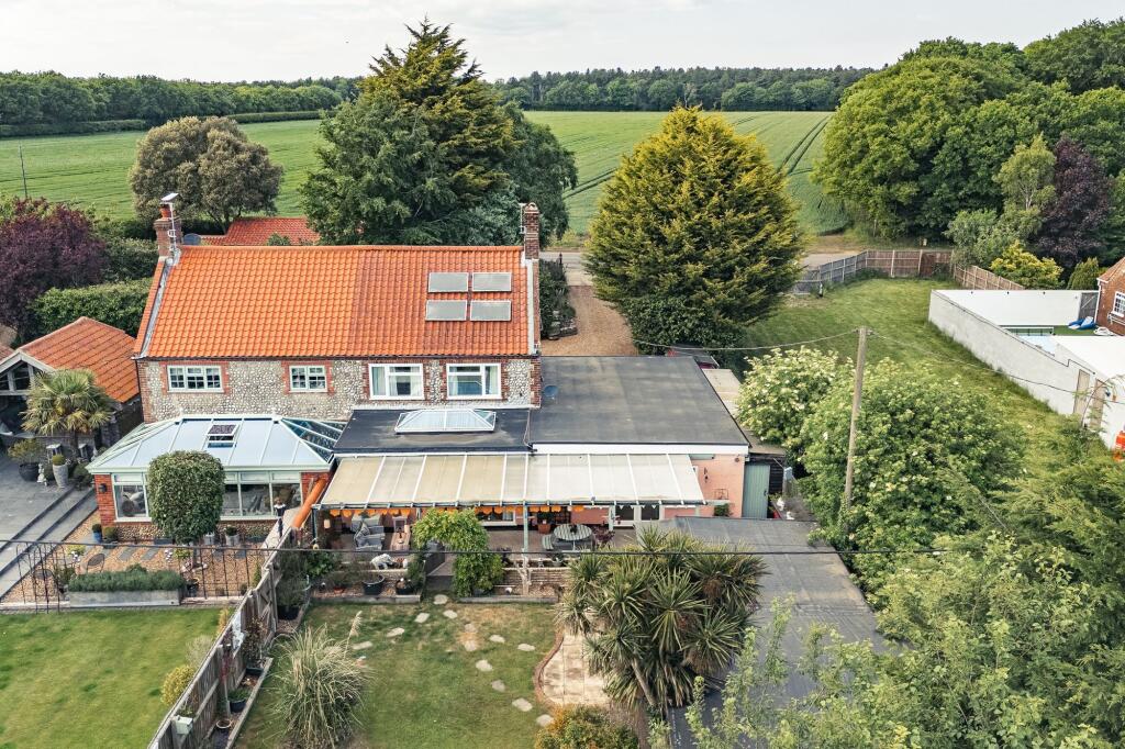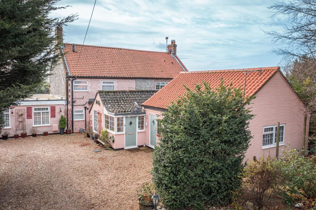 This property at Holt Road, Aylmerton, presents a unique opportunity in the North Norfolk area. The house is a charming property, exhibiting both character and some modernization. The kitchen and some rooms have undergone recent renovations, resulting in an appealing blend of contemporary and traditional styles. However, other parts appear dated and could benefit from modernization to fully harmonize the property’s presentation.