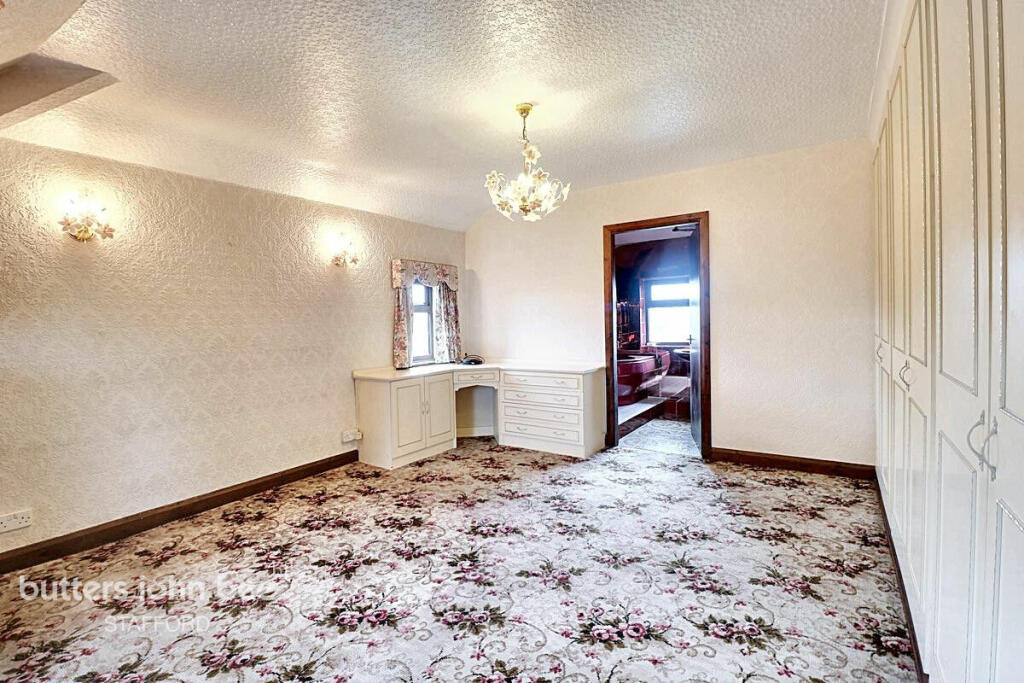 This four-bedroom detached house on Winghouse Lane, Stoke-on-Trent, offers a blend of features that will attract different types of buyers. The property’s location in Swynnerton & Oulton provides a balance between rural peace and convenient access to amenities and transport links, thanks to its proximity to Stone and Stoke-on-Trent. A notable positive is the sizeable garden, presenting ample outdoor space ideal for families or those seeking space and privacy. The property is surrounded by a hedgerow giving privacy. The garden even features a shed. There is also a large driveway and a garage. This garage is currently in use as storage. Inside, the house presents a mix of contemporary and older design elements. Several images show updated areas but others showcase decor that appears dated; most notably the kitchen and bathrooms. The presence of three bathrooms is a desirable feature, particularly for families. While the interior would benefit from modernisation, the overall structure appears well-maintained, and features like the hardwood flooring and the sizable rooms offer a solid foundation for future improvements. Potential buyers should be aware that the property’s age might require some maintenance and upgrades in the coming years. Overall, the home represents a potential investment opportunity. The asking price of £425,000 appears to be competitive within the local market, considering its size, location, and garden, but an accurate price per sqft valuation is currently impossible due to the lack of sqft data. However, prospective buyers should factor in renovation costs and conduct a thorough property survey prior to making an offer.