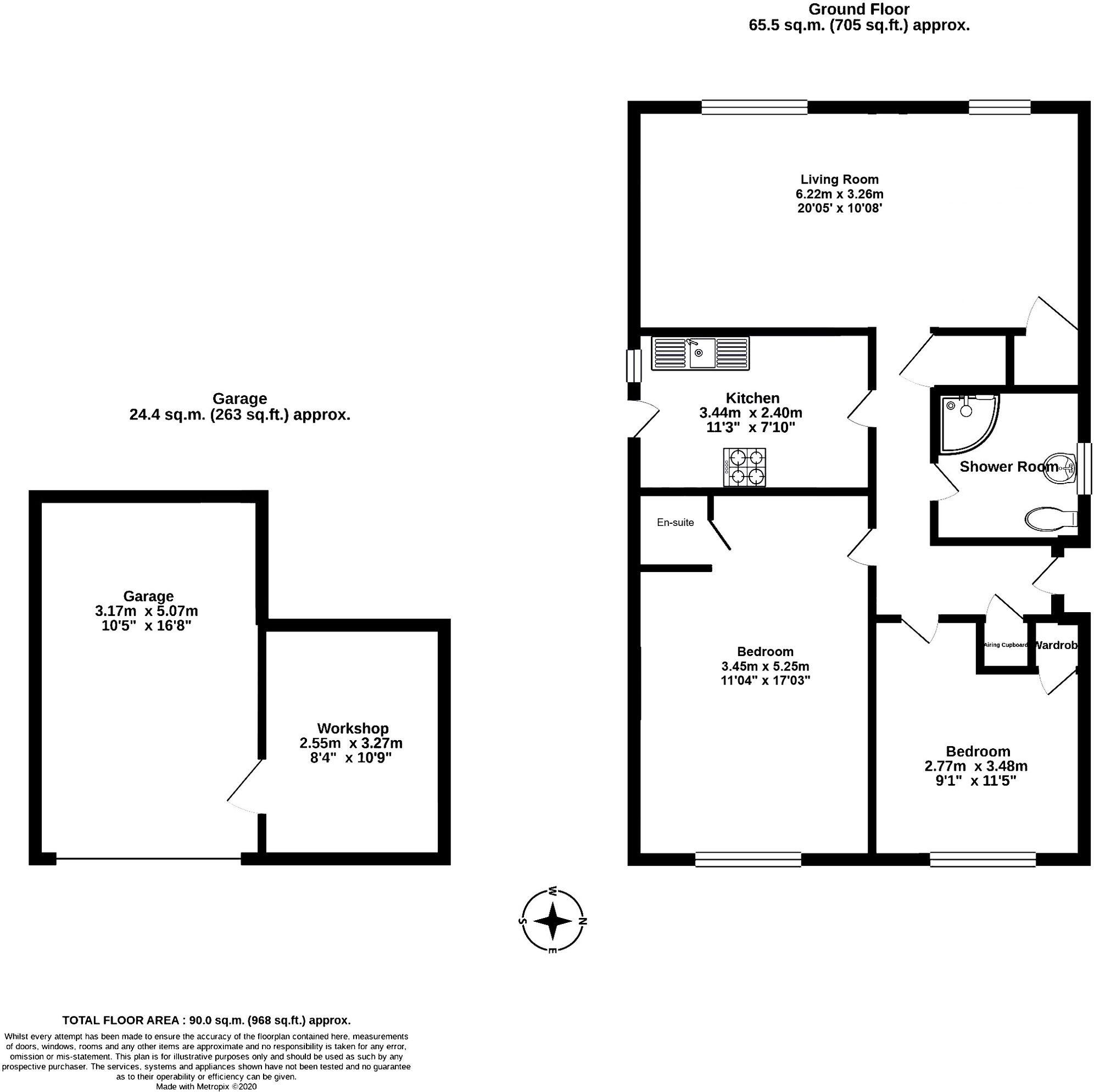 Detached bungalow with larger floorspace than some of the other two bedroom bungalows on the estate as it previously had three bedrooms. Good sized lounge/diner. Pretty gardens, driveway, garage and workshop.