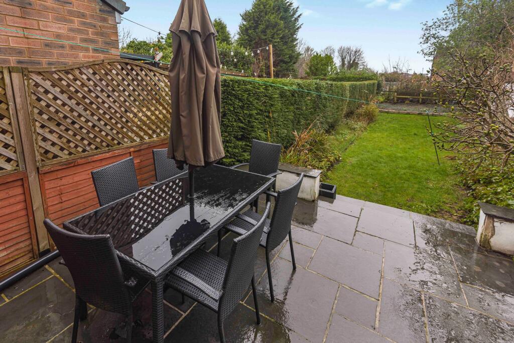 This is a three-bedroom semi-detached property located on Conway Road in Sale, Trafford. The property is in a popular residential area with good access to local amenities, schools, and transport links. The property appears to be in generally good condition, with a well-maintained exterior and tidy interior. The kitchen and bathroom could benefit from modernisation. The property has a good-sized garden with a lawn, patio area, and mature shrubs. The asking price of £400,000 is slightly above the average price for similar properties in the area.