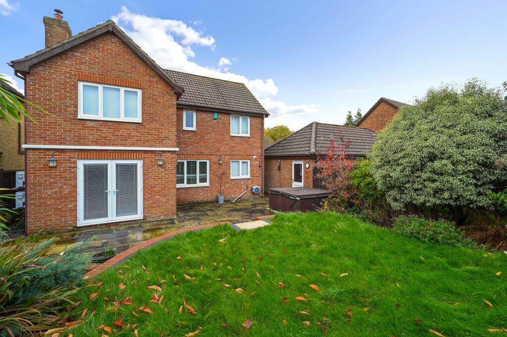 Impressive 4-bed detached house in sought-after Park Farm location. Modern features incl. open-plan kitchen/diner, study, lounge, and master bedroom en-suite. No onward chain. Close to amenities, train station, A2070. Garden, double garage, driveway. Stylish family home.