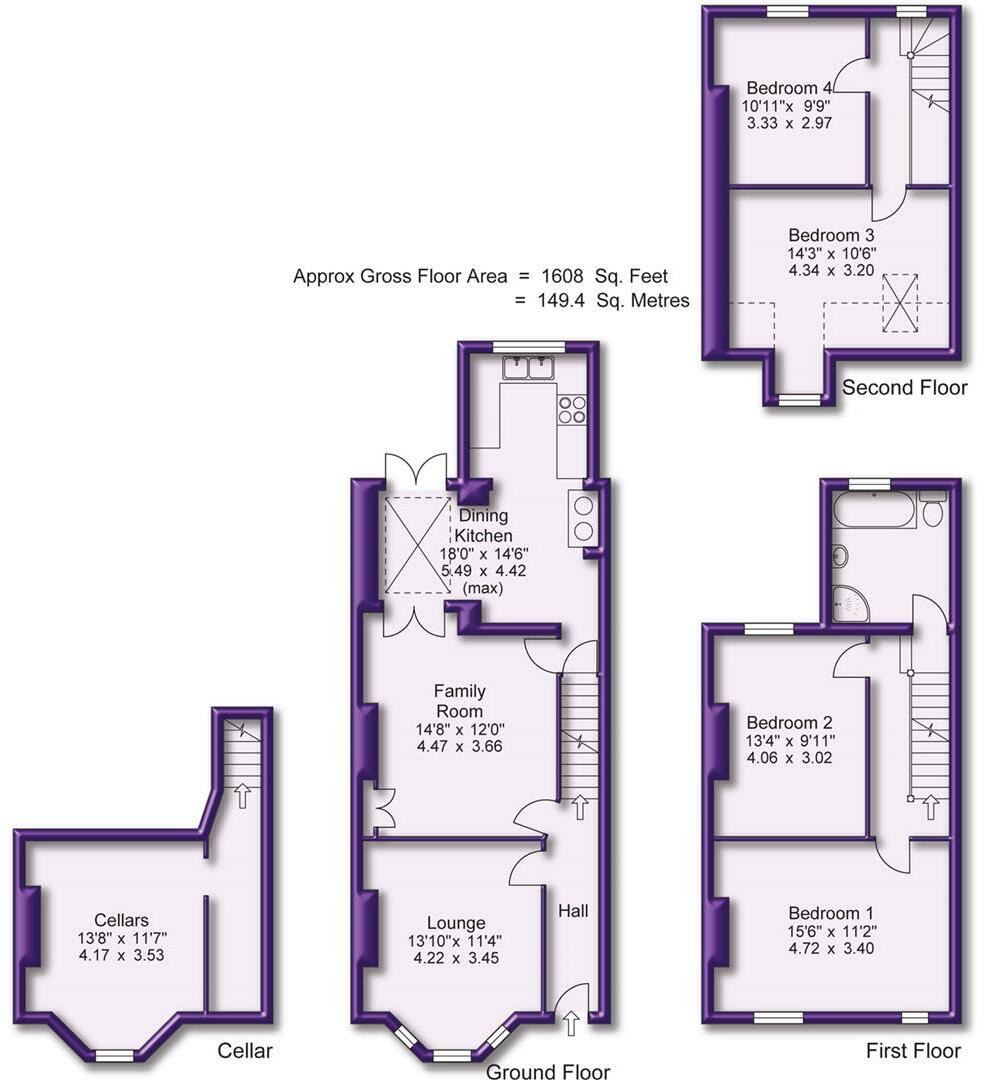 A SUPERBLY PROPORTIONED VICTORIAN TERRACE ARRANGED OVER FOUR FLOORS IDEALLY LOCATED OVERLOOKING STAMFORD PARK AND WITHIN WALKING DISTANCE OF ALTRINCHAM TOWN CENTRE. 1608 sqft. Hall. Lounge. Family Room. Dining Kitchen. Four Double Bedrooms. Family Bathroom. Cellars. Permit Parking. Gar...