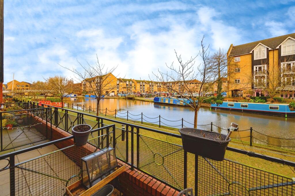 The property is a two bedroom, two bathroom apartment located in Stationers Place, Hemel Hempstead. It is situated on the Grand Union Canal, offering picturesque views. The apartment is in good condition, with modern fixtures and fittings. The photos show a well-maintained property that appears clean and ready to move into. There is a small patio area, providing some outdoor space. The location is convenient, with Apsley train station within walking distance, providing easy access to London and other areas. Several schools are located nearby, including Nash Mills Church of England Primary School and Two Waters Primary School. The list price of £350,000 seems reasonable considering the location, condition, and amenities, although a definitive price per square foot analysis cannot be performed due to missing data in nearby listings.