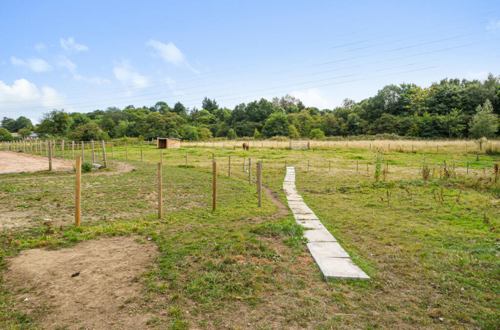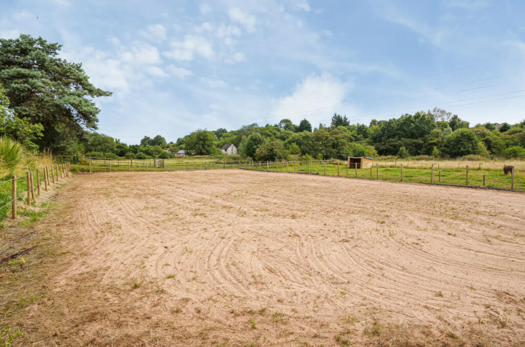A DETACHED THREE STOREY, FOUR BEDROOM CHALET HOUSE, SET IN JUST OVER 5 ACRES WITH STABLING, BARNS, MANÈGE AND PADDOCK GRAZING, IN A SEMI-RURAL LOCATION WITH GOOD ACCESS TO THE ROAD NETWORK.