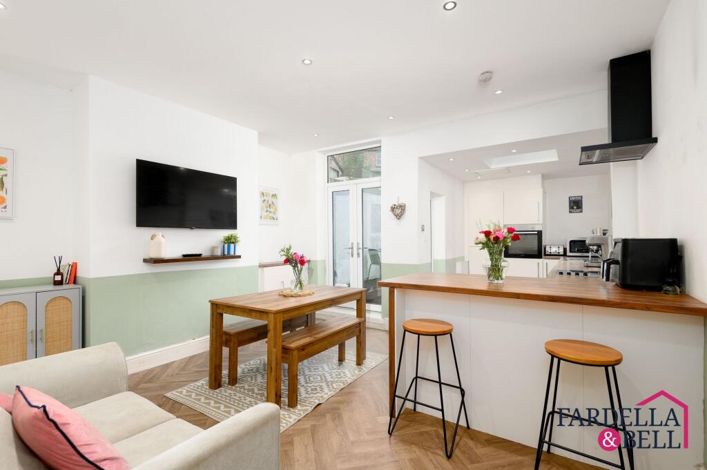 This beautifully presented three-bedroom terraced house seamlessly blends period charm with contemporary style, offering an inviting and versatile living environment.