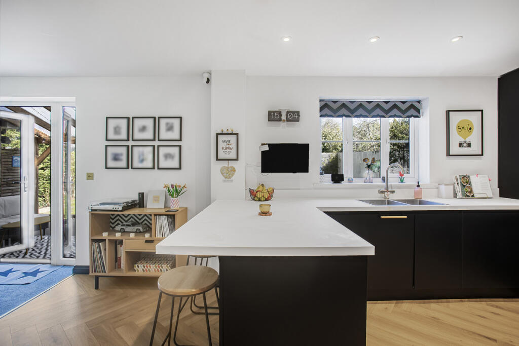 An exceptionally well-presented four-bedroom detached double-fronted home, enjoying an open rear aspect overlooking tennis courts
