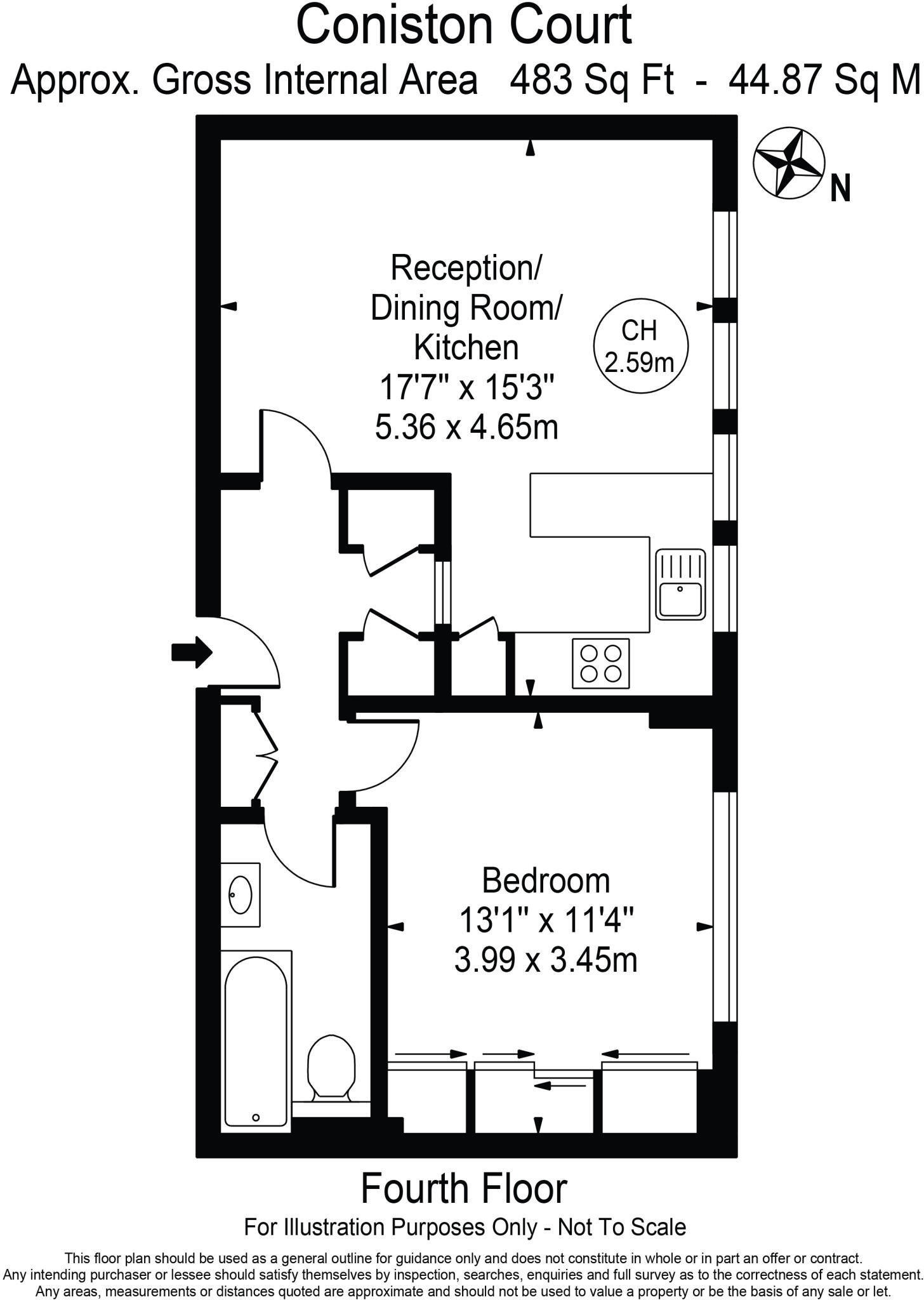 A beautifully bright 1 bedroom apartment situated on the 4th floor of the popular purpose built block, Coniston Court. The apartment comprises open plan kitchen and reception room, spacious double bedroom, and family bathroom. Coniston Court is a well-maintained building, benef...